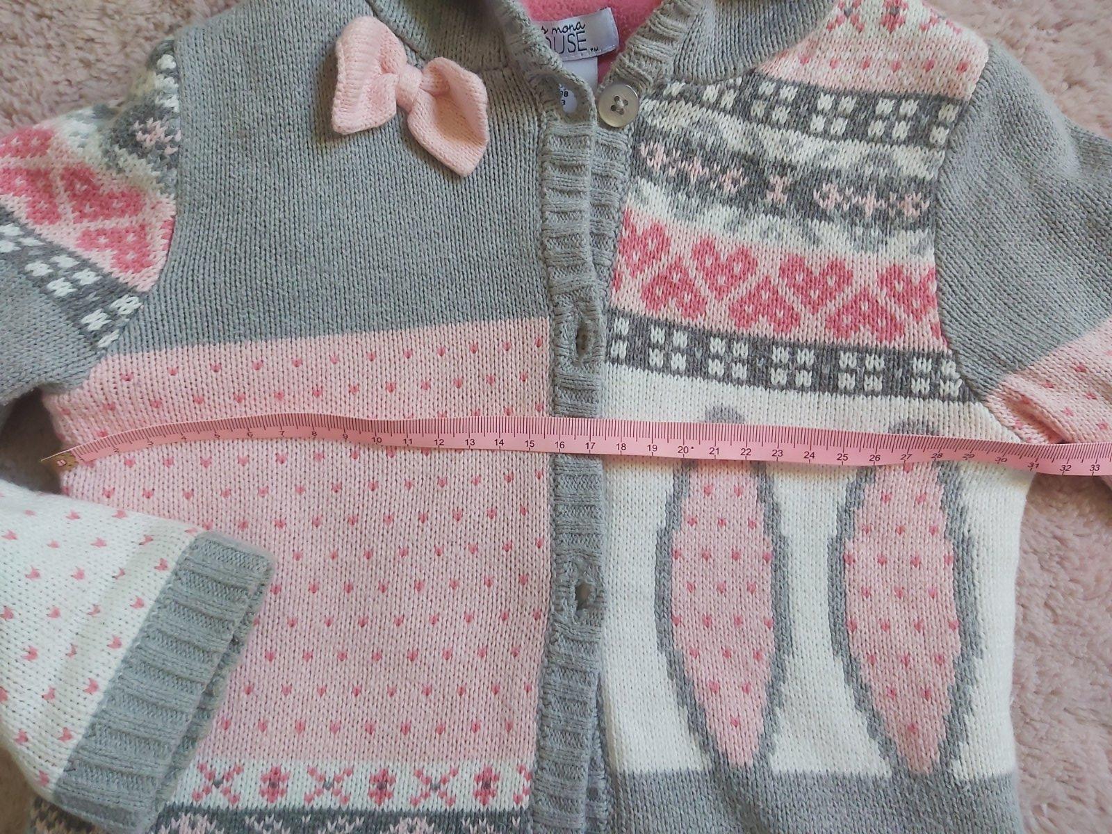 Krásny, pletený svetrík podšitý flisom. Mašličky a zajkovia. Kupovaný v UK.