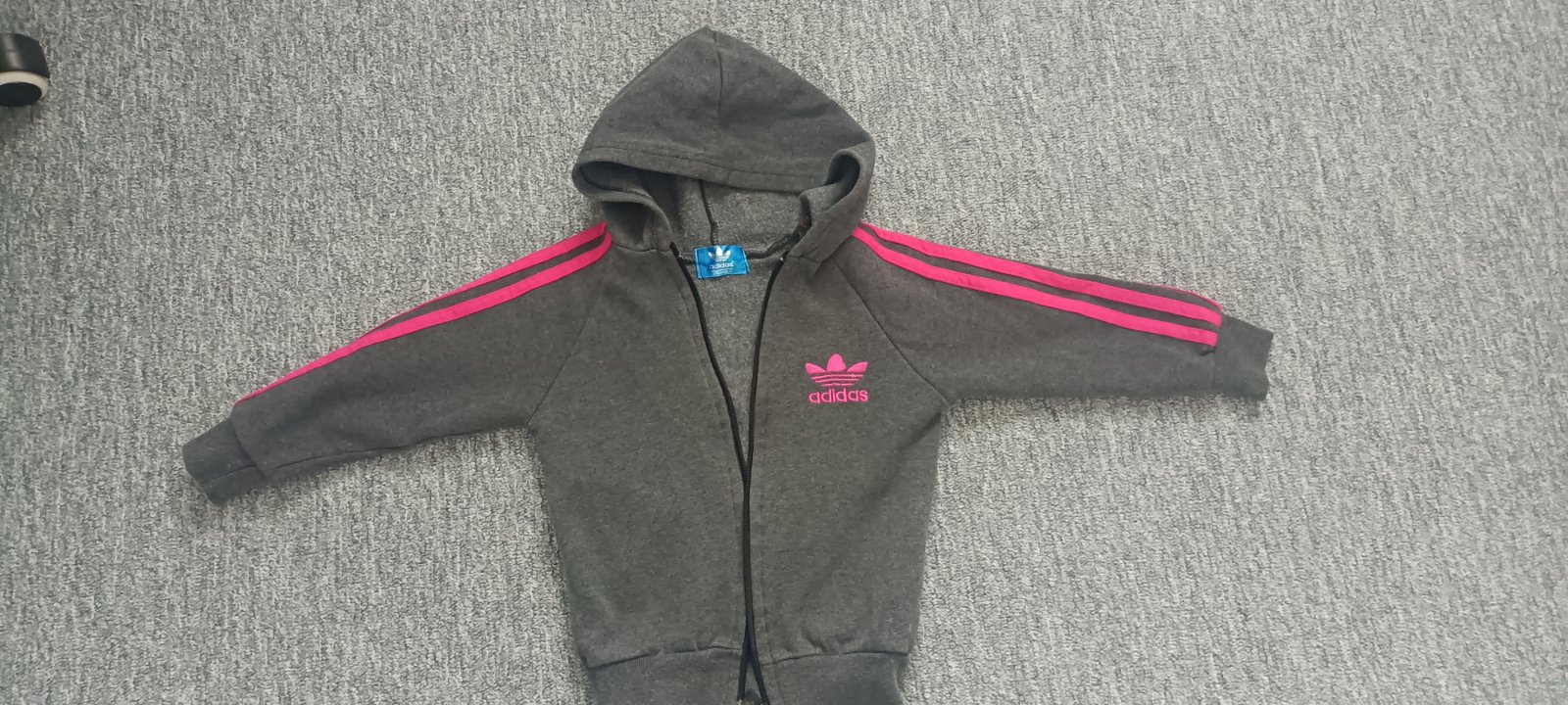 Nosená Adidas mikina, nejde dobre zachytiť spodnú farbu je to výrazná cyklamenova nie červená.