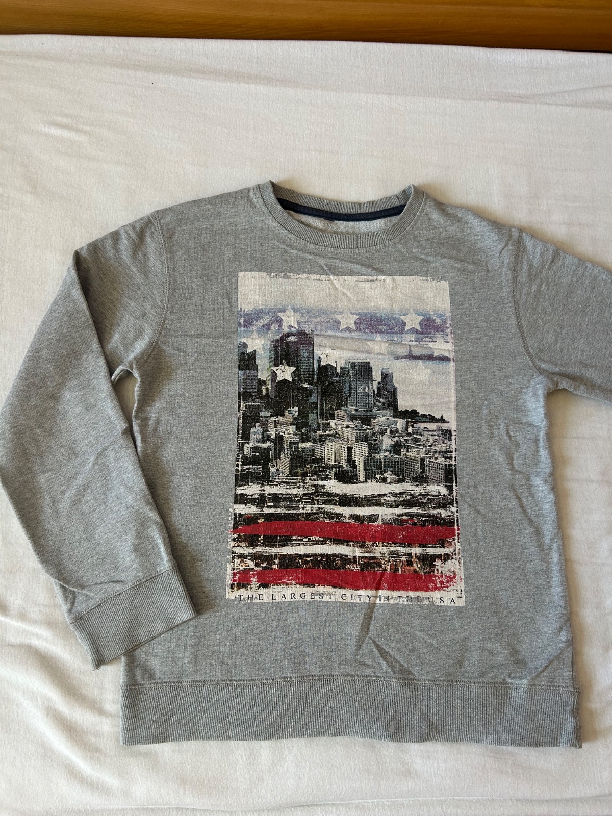 Predám mikinu na donosenie. Veľkosť odhadujem na 152 (viď. rozery). Má známky nosenia. Stav a presné rozmery: viď. detailné fotky.