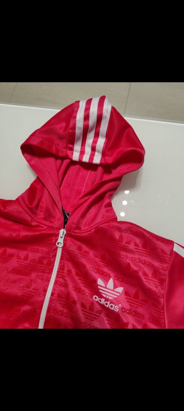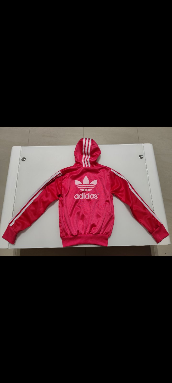 Predám krásnu dievčenskú ružovú Adidas mikinu. Nosená v dobrom stave, ale trocha sa páre pásik na rukáve. Rozmery viď foto.Pozri aj ďalšie moje inzeráty.Seriozne!!!