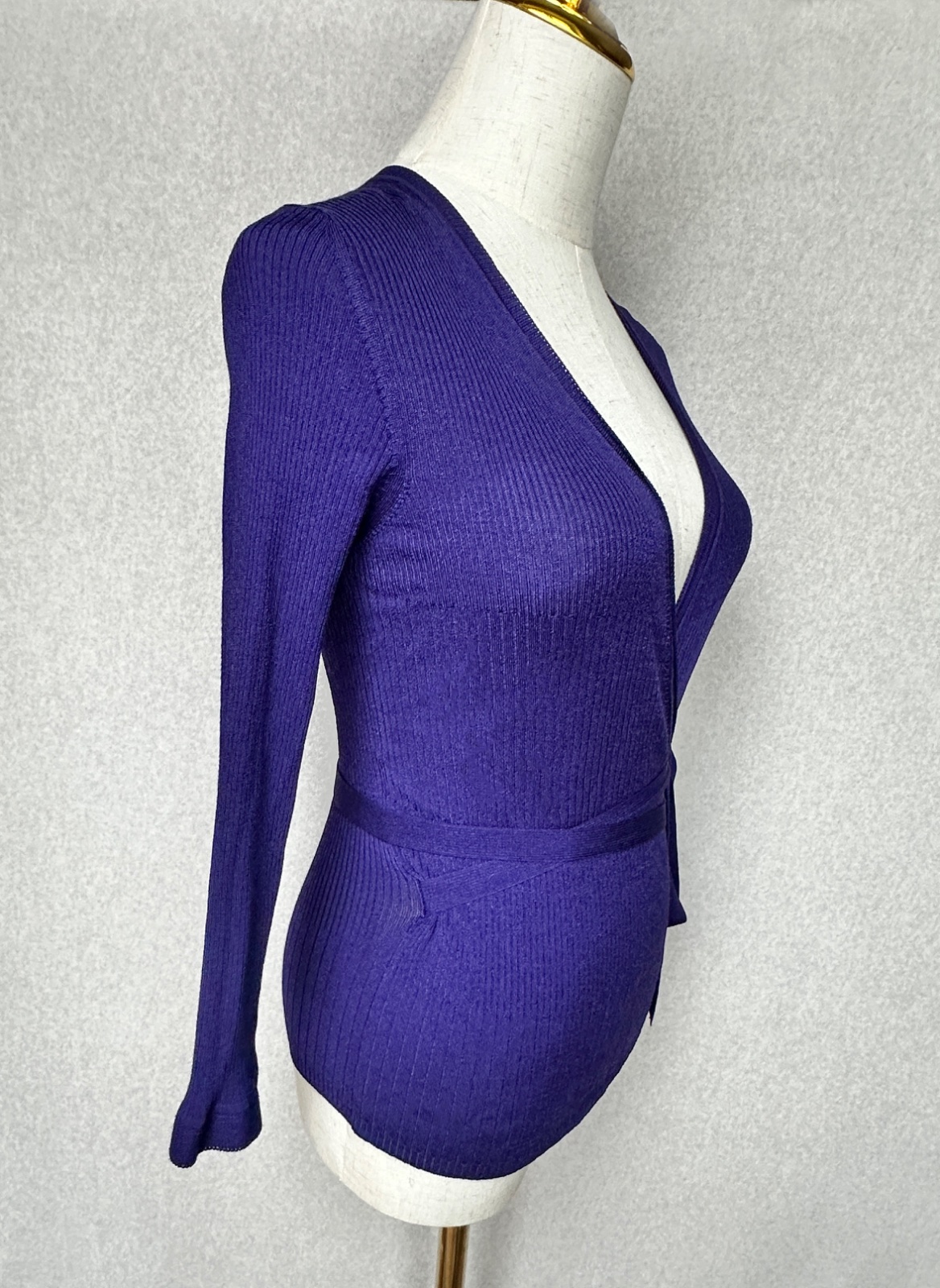Krásny ženský top v žiarivej tmavej fialovej farbe. 95% viskóza, 5% polyester. Materiál je úpletový - maximálne poddajný, flexibilný - prispôsobí sa postave. Rukáv je nad zápästie - lem je mierne volánikový. Veľmi pekne ukáže oblečený.