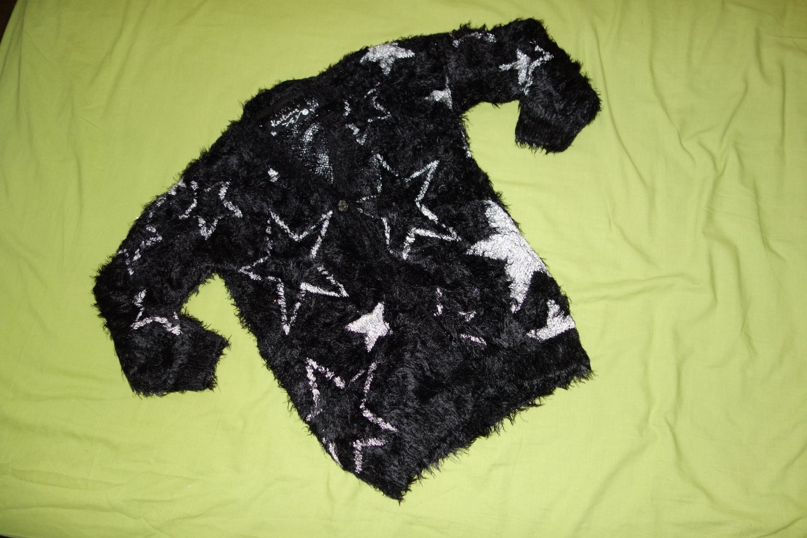 Krasny hruby svetricek s hviezdickami vo velmi dobrom stave. Zapina sa na 1 gombik.
