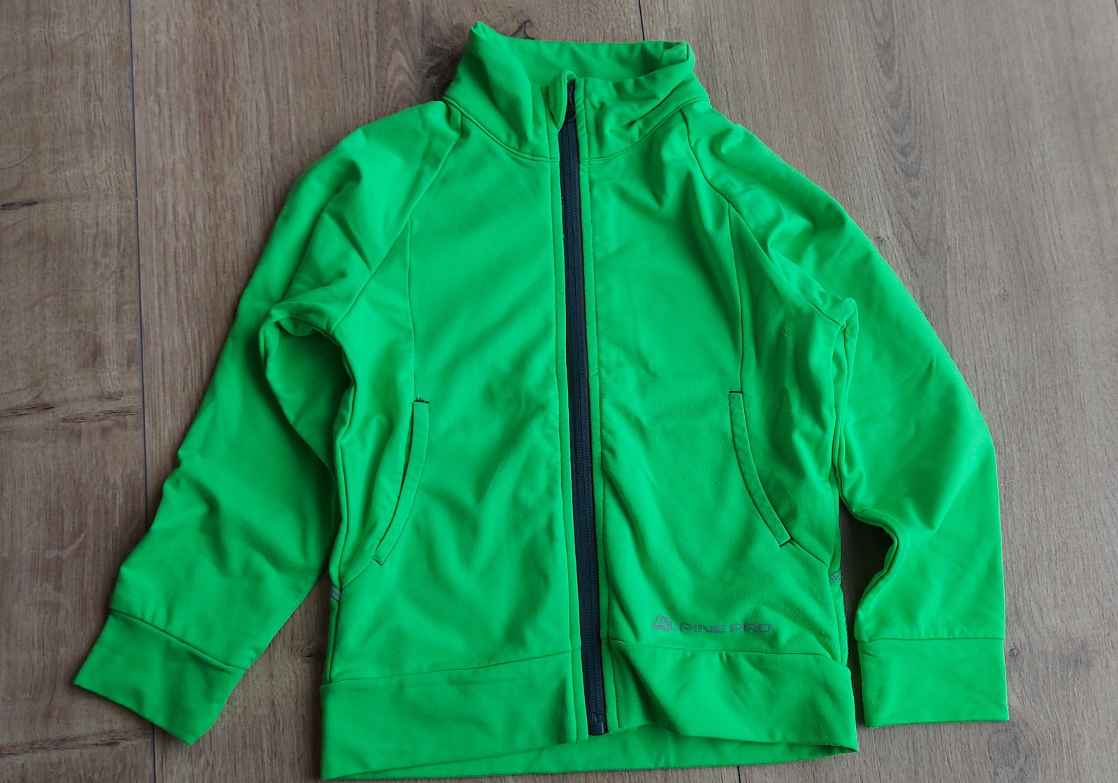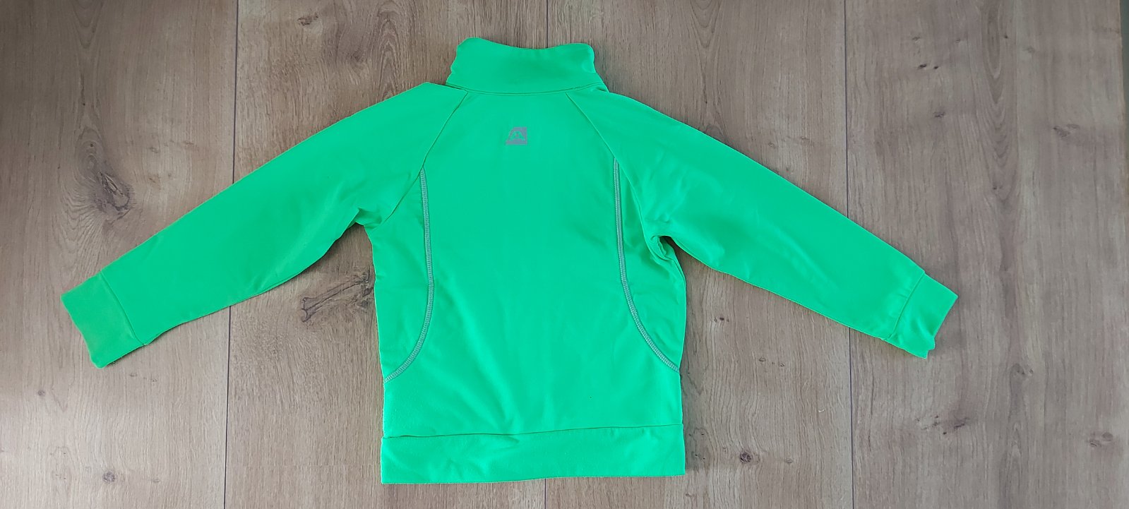 Krikľavo zelená rýchloschnúca mikina (neodfotilo dobre farbu). Veľkosť 104/110. Reflexné prvky na chrbte.