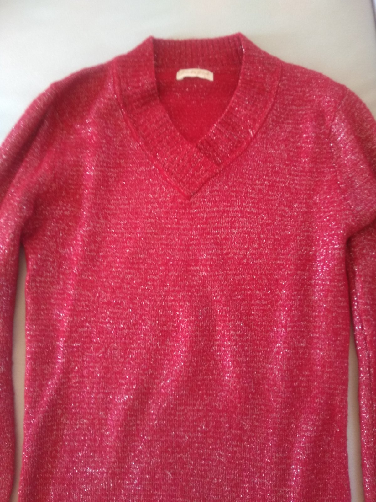 Predám pekný červený sveter, veľkosť L, cena 5 eur.