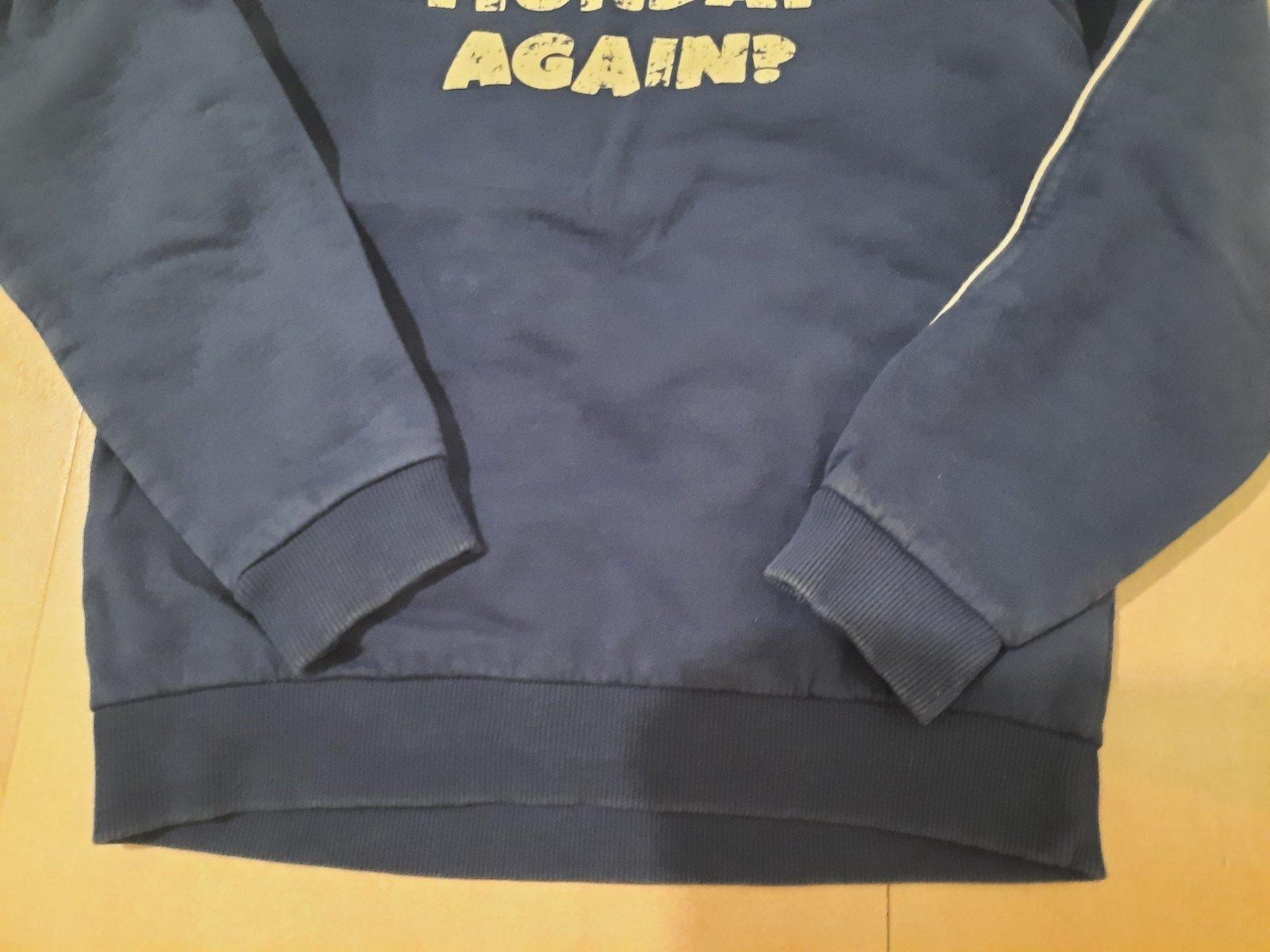 Veľmi pekná bavlnená mikina vo výbornom stave. Farba je tmavá modrá. Na rukáve je biely tenký pásik.