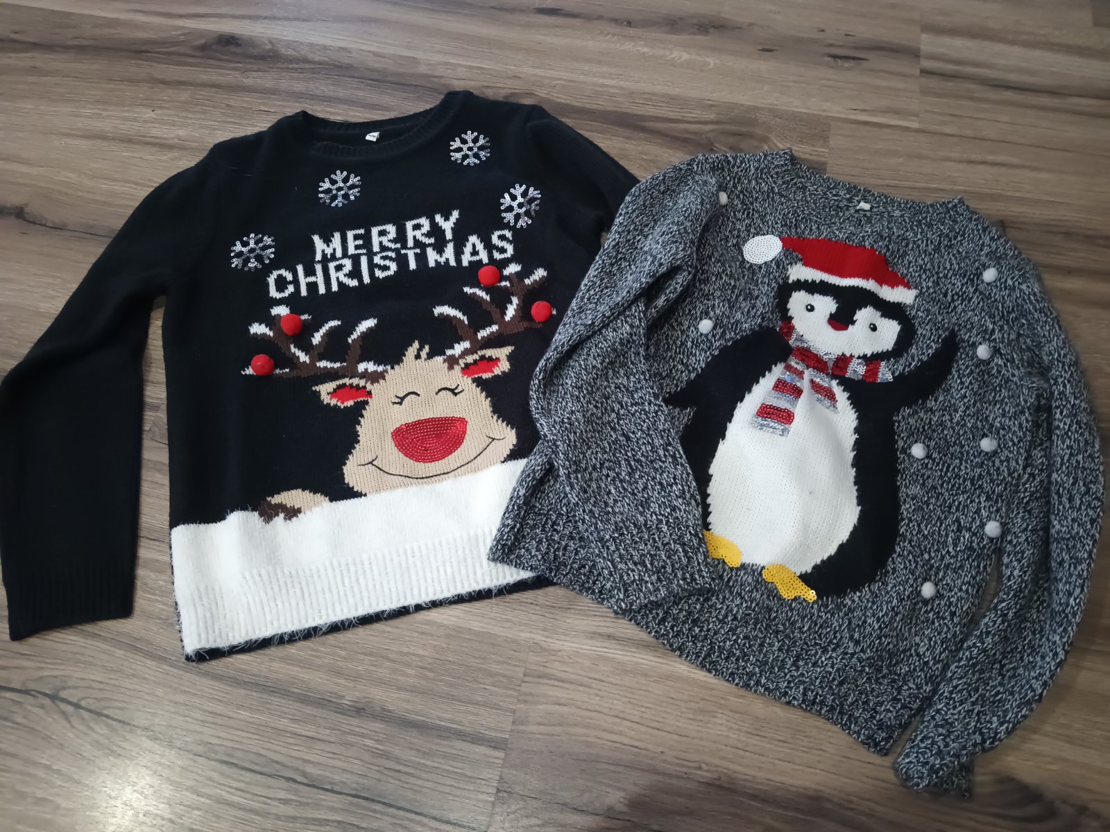Vianočné svetre sobik je 146 a tučniak je o číslo mensi cena spolu