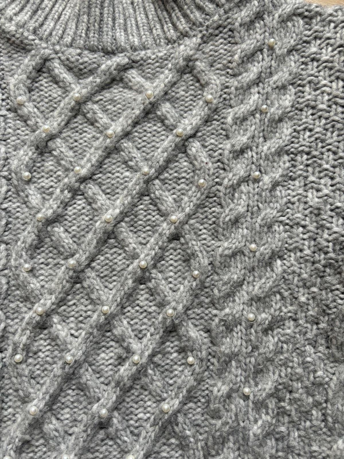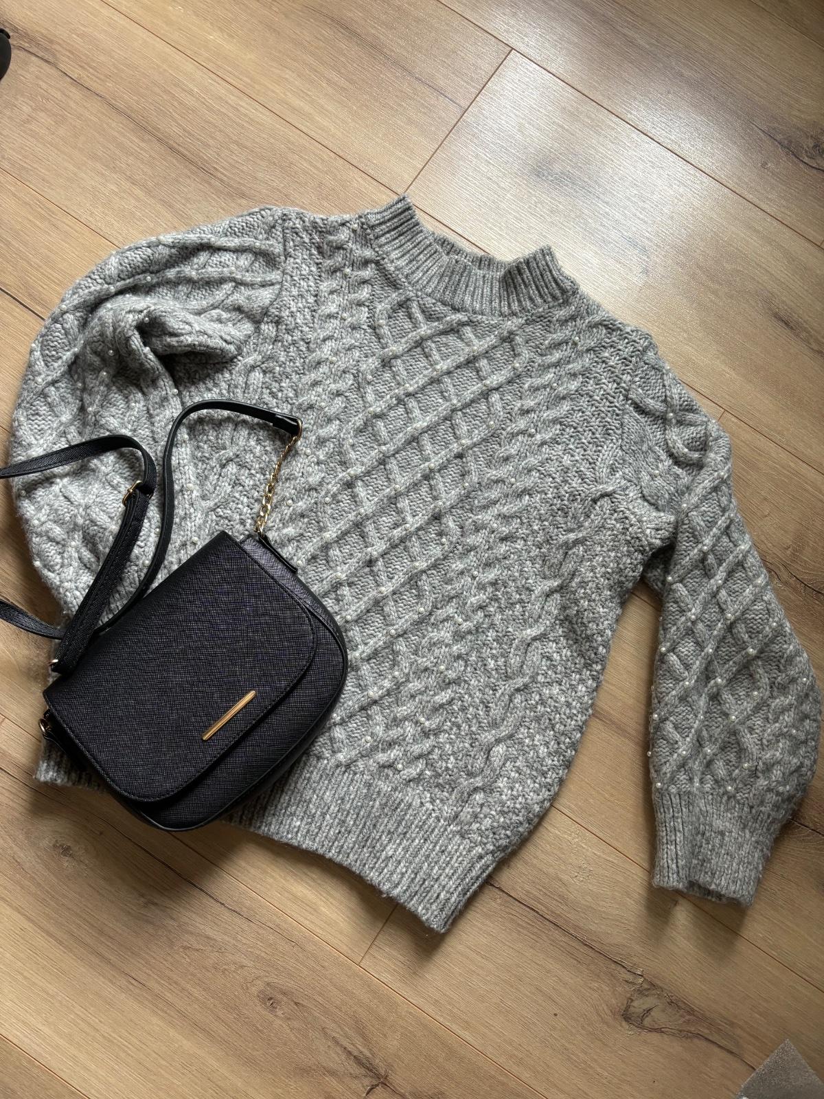 Pekný nosený sveter veľkosť L ale kľudne ja som nosila ako mko .