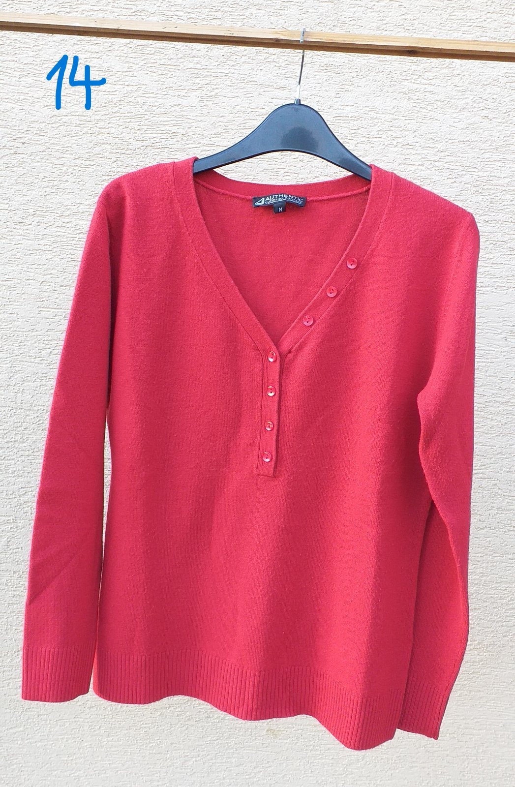 červený sveter, dĺžka 60 cm, šírka 46 cm, dĺžka rukávov 60 cm, cena 4 eurá+poštovné