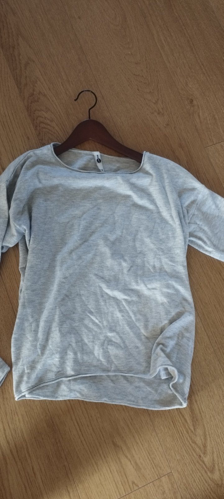Minimálne nosený, nepoškodený, výborný stav, jemný úplet, 3/4 rukáv, možnosť vyhrnutia a skrátenia, lodičkový výstrih, sivá farba s čiernou potlačou. Celková dĺžka 62 cm, šírka pod pazuchami 2 x 52...