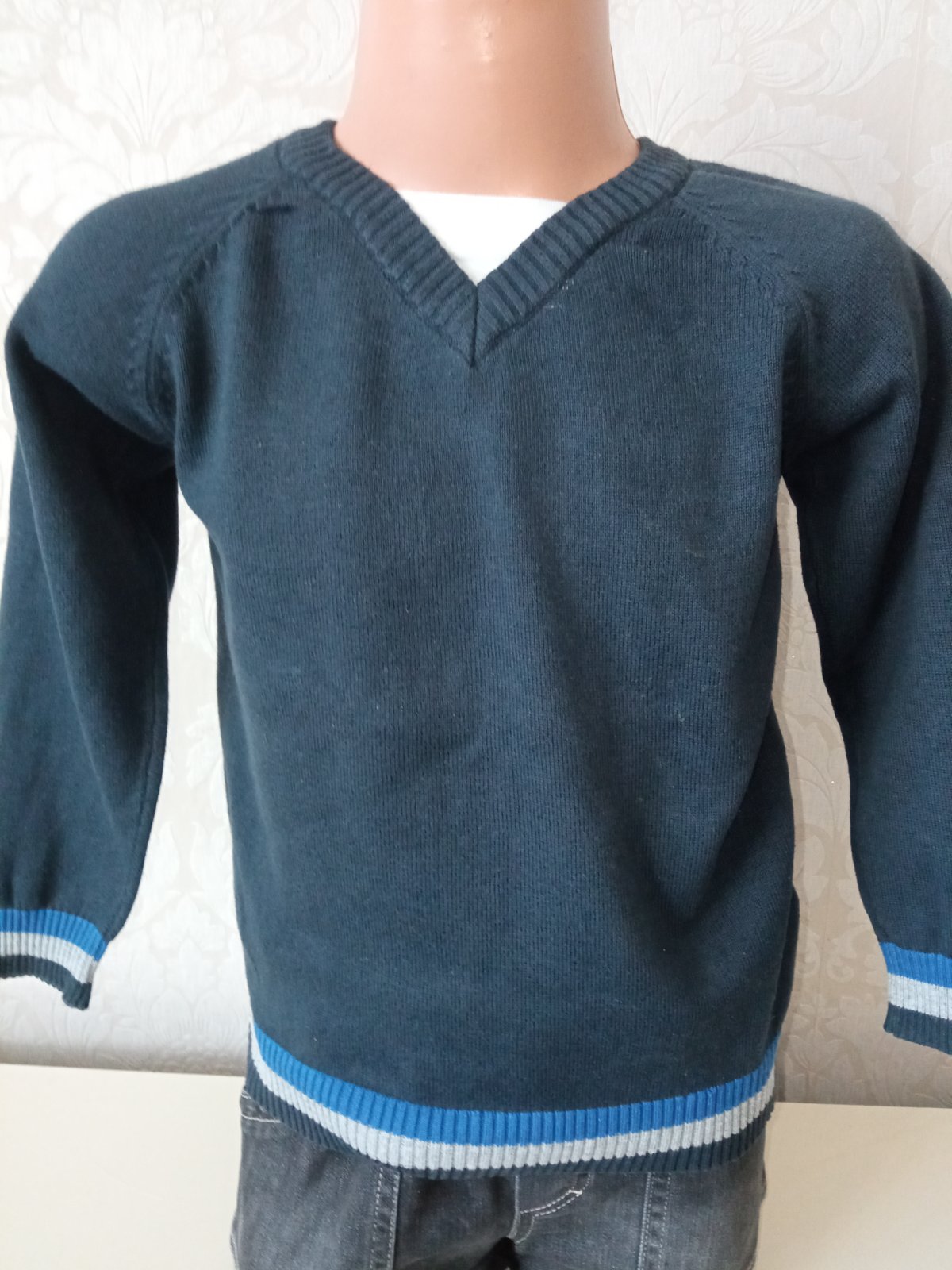 Chlapčenský sveter, tenký. Elastický. Véčkový výstrih. Patent pri krku, na rukáve a na páse.