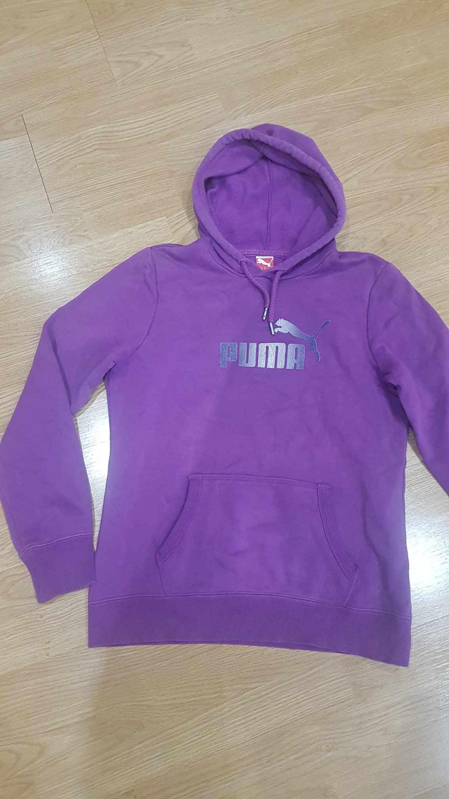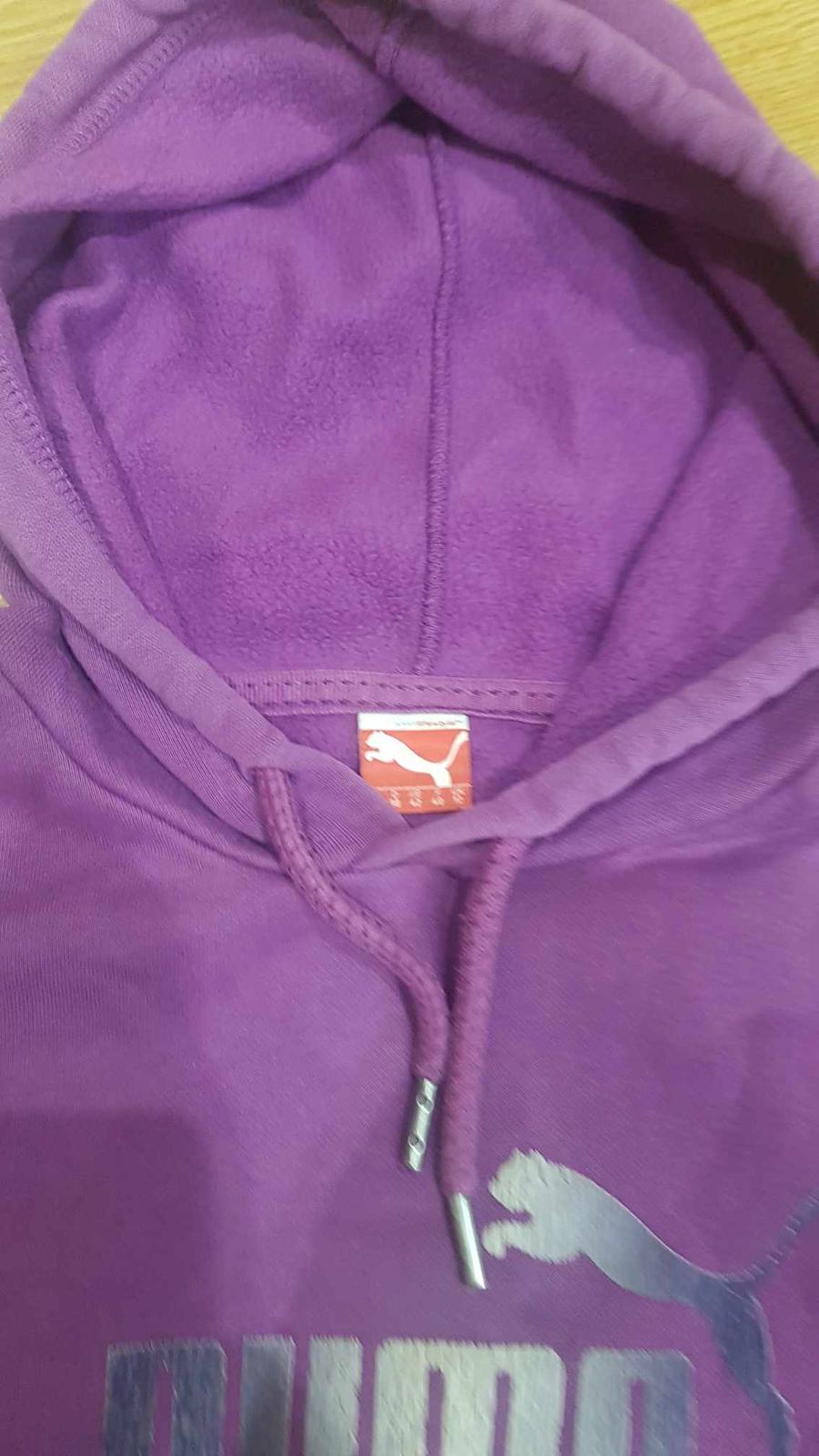 Mikina je bez žmolkov a známok nosenia, na rukáve znak Puma. Šnúrka v kapucni. Klokanie vrecká v predu. Mikina má šírku popod paže 50 x 2 cm, celková dĺžka meraná cez stred chrbta je 62 cm - merala som odtiaľ ako je prišitá kapucňa, Rukáv od ramena je 64 cm.