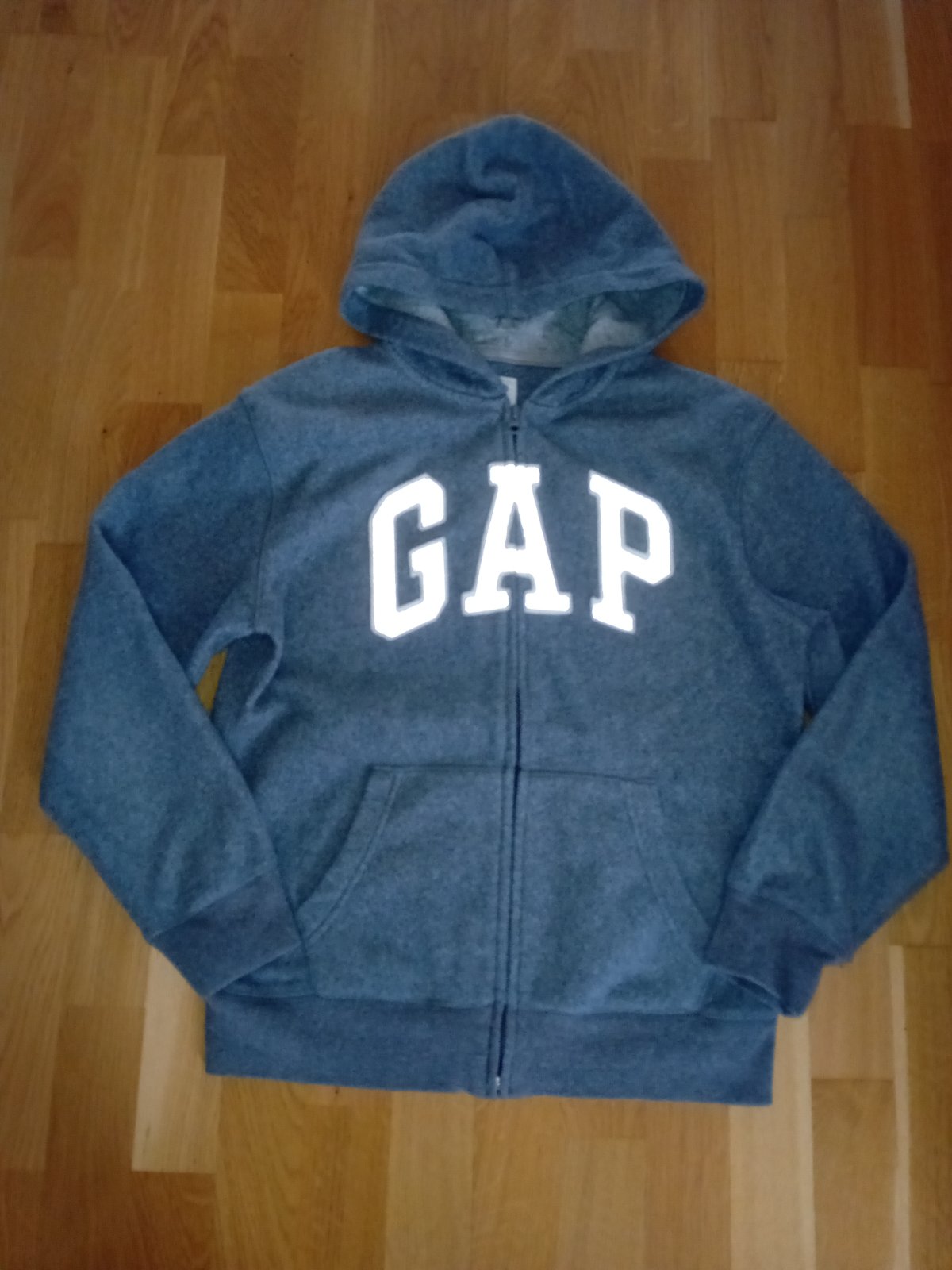 Predám sivú mikinu GAP, reflexný nápis, veľkosť XXL, 150-164cm, 13-14rokov. Nosená. Cena 10e.
