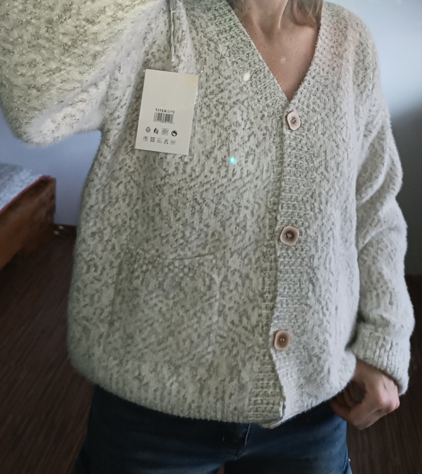 Teply, makucky svetrik, prijemny na telo, vobec neskriabe, je naozaj hruby, teply... Sadne od S ako oversize(Fotene na postave S) po XL... Novy s visackou...