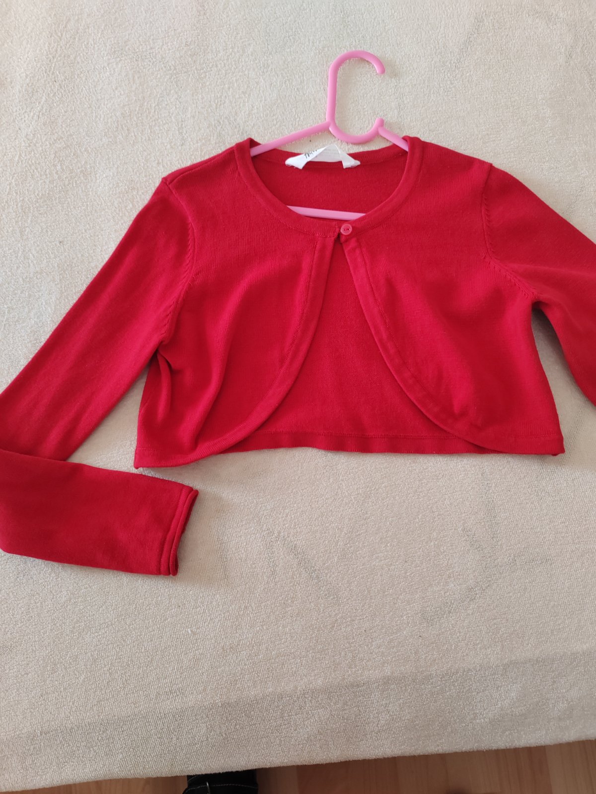 SKLADOM Bolerko z jemnej pleteniny H&M, kód 755768005, červená farba, 100% bavlna. Dostupná veľkosť: 8-10 rokov TOVAR JE U NÁS SKLADOM = EXPEDUJEME IHNEĎ žiadny Ali, iba originály priamo od výrob...