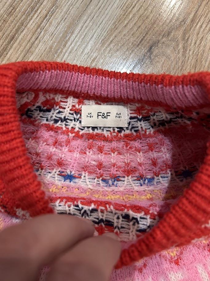 Krásny teplý svetrík, veľmi málo nosený. Veľkosť je 128, no sadne aj na väčšie dievčatko, je príjemný elastický