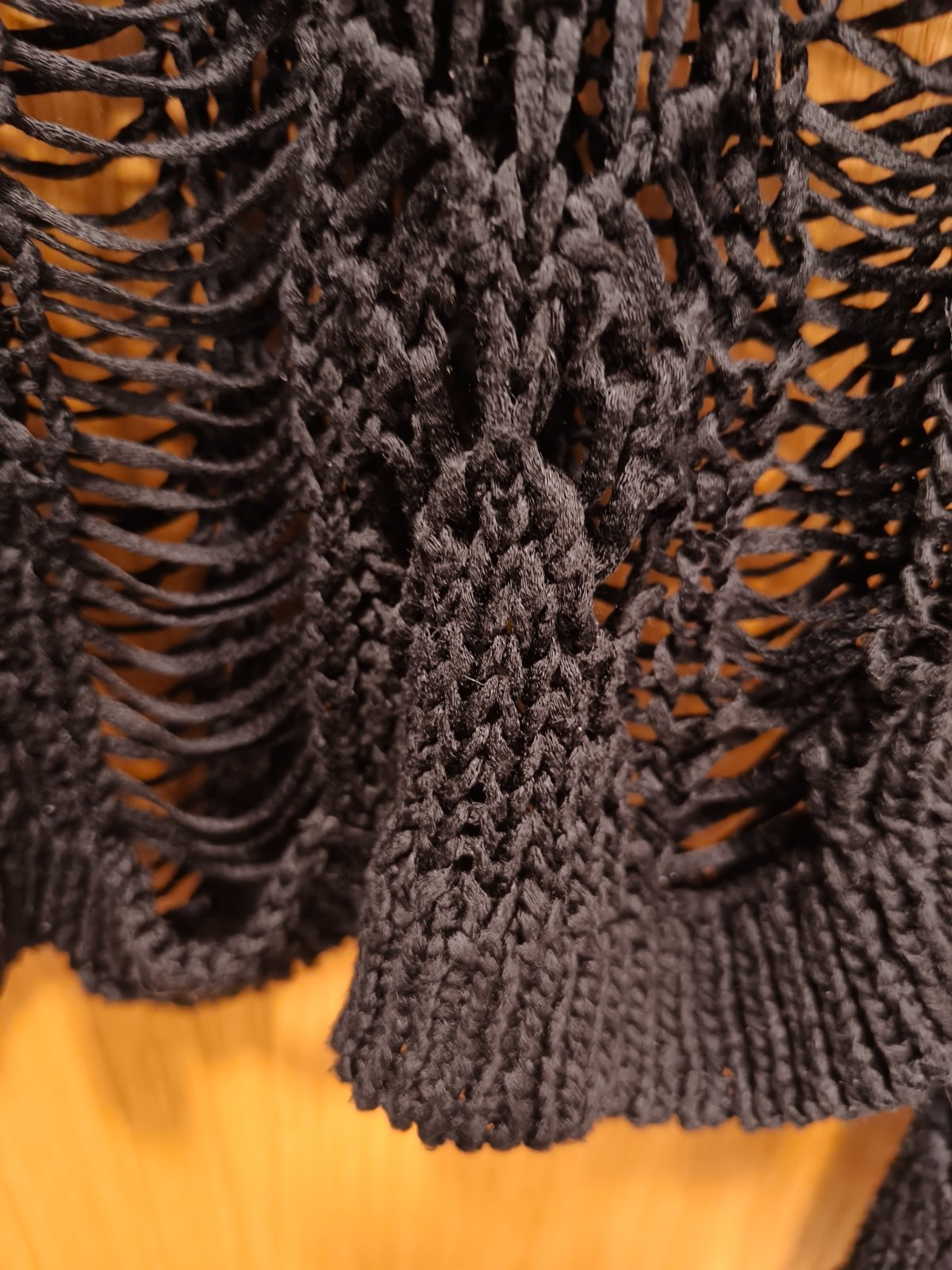 Čierny s modrou trblietavou niťou, uložíte ako chcete, vďaka širšiemu patentu ponosite ako dlhší sveter, kratší....super cena PC vysoká...bez známok nosenia