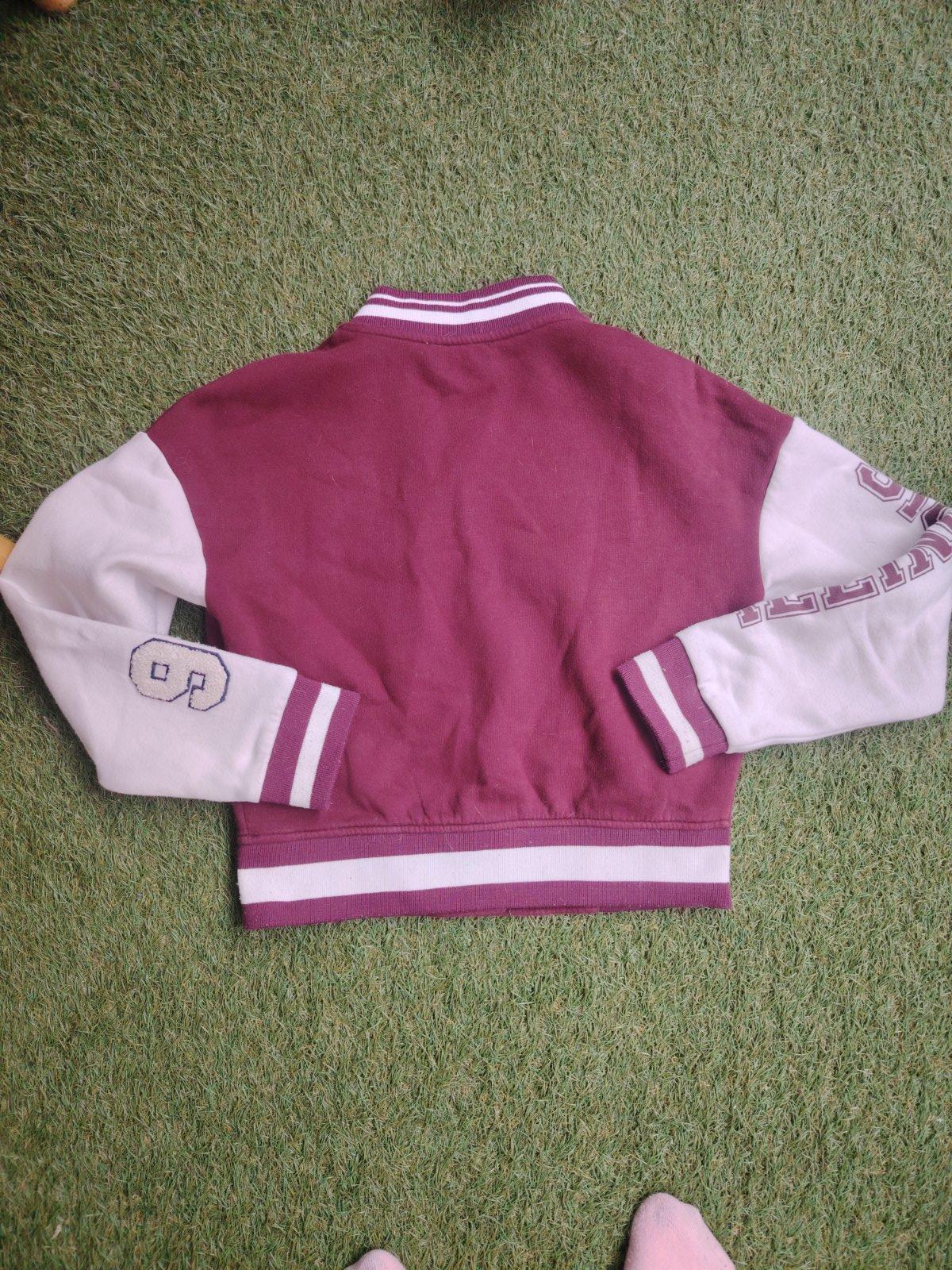 mikina, u nás veľmi obľúbená, viac nosená, je to už trochu vidieť, nemá žmolky, poškodenia, na doma ešte parádu narobí, nažehlovačka je popukaná od výroby, farba je taká špinavo-ružová