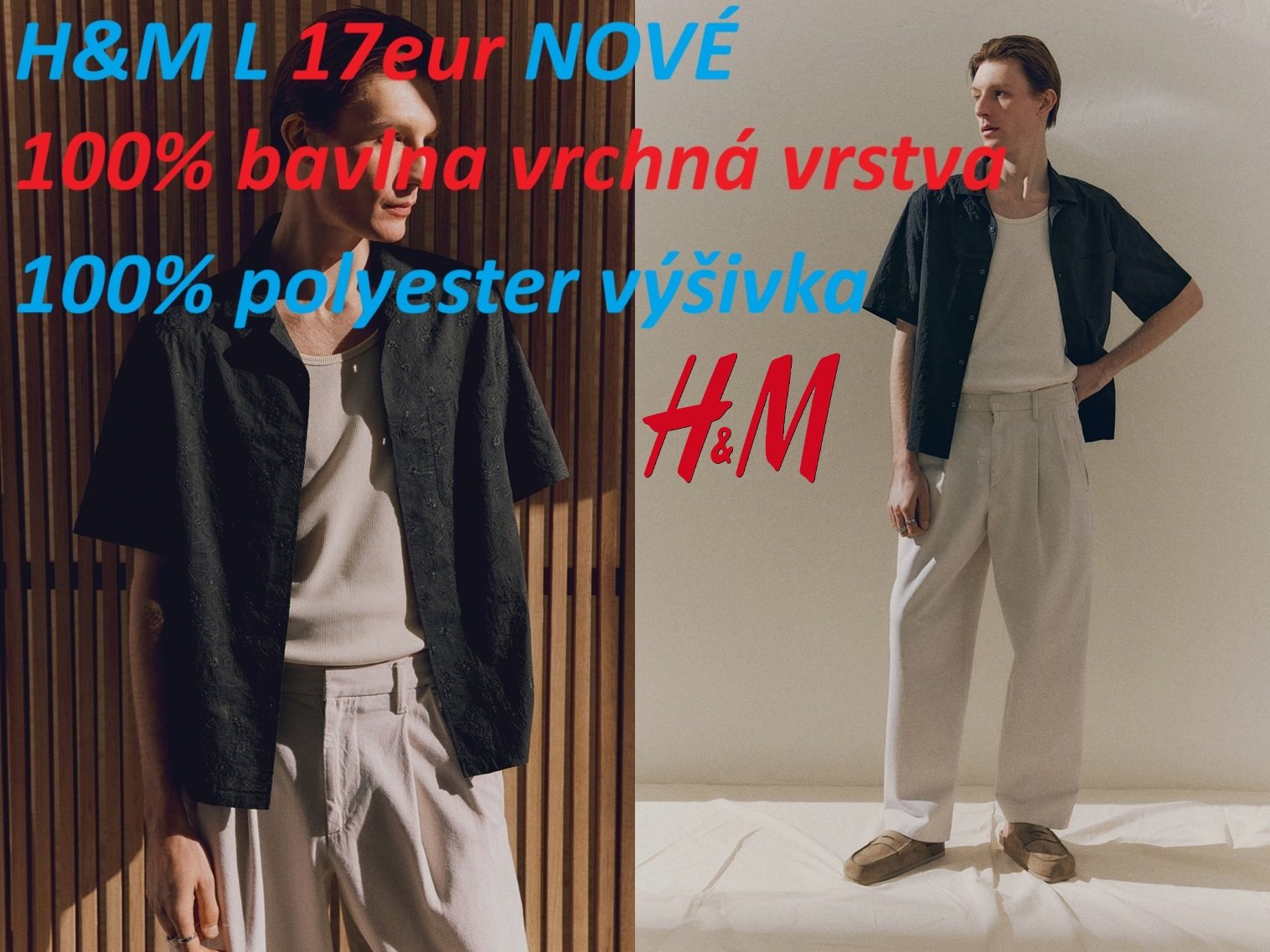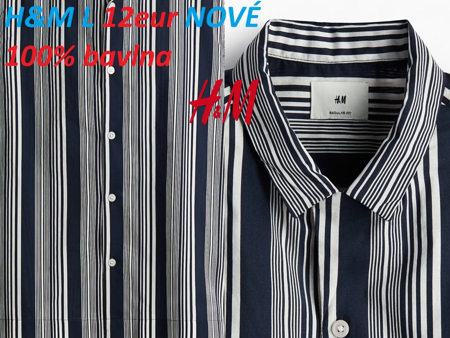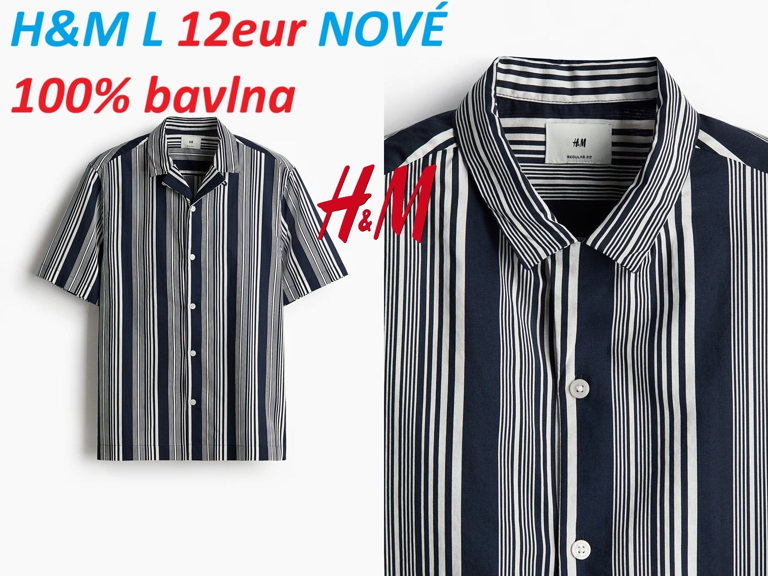 Ďalej predám pánsku košeľu H&M, veľkosť L. Košeľa je vyrobená z bavlnenej tkaniny, s otvoreným golierom a s krátkymi rukávmi. Košeľa je 100% bavlna a klasický strih. Košeľa je nová. Cena 12eur.