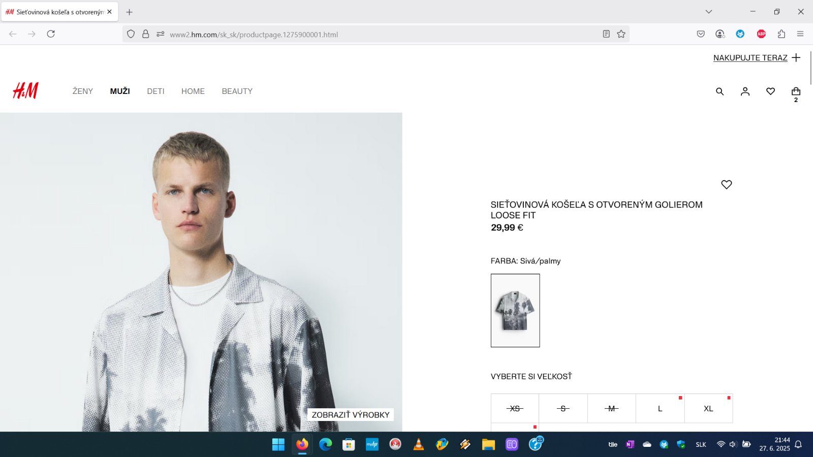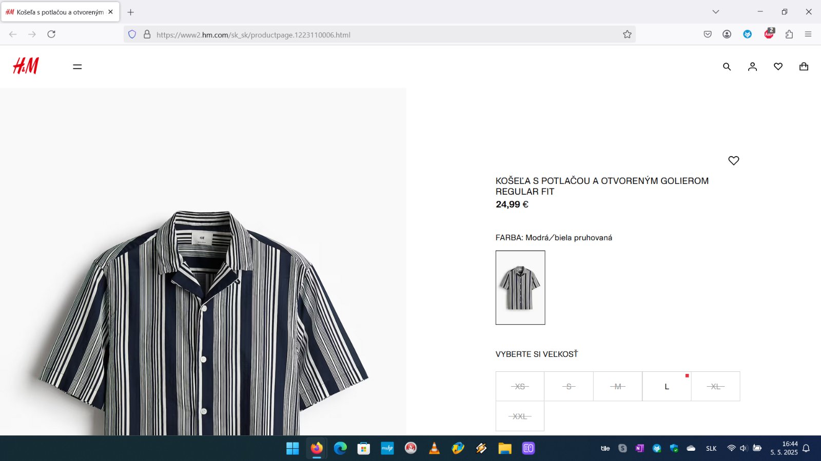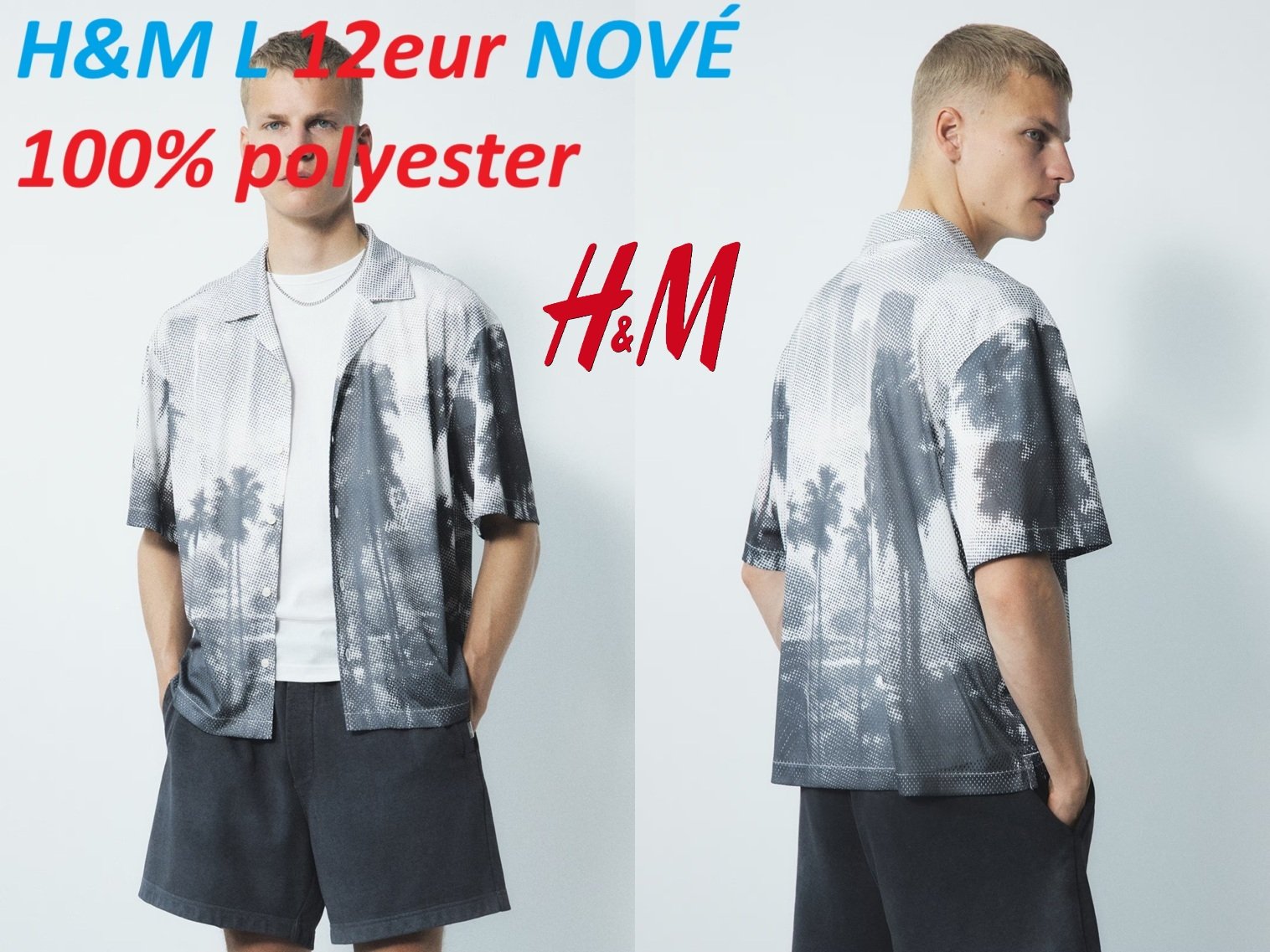 Ďalej predám pánsku košeľu H&M, veľkosť L. Je to sieťovinová košeľa s krátkym rukávom, potlačou, otvoreným golierom a hladkým zapínaním. Rovný spodný lem s bočnými rozparkami. Košeľa je 100% polyester a voľný strih. Košeľa je nová. Cena 12eur.