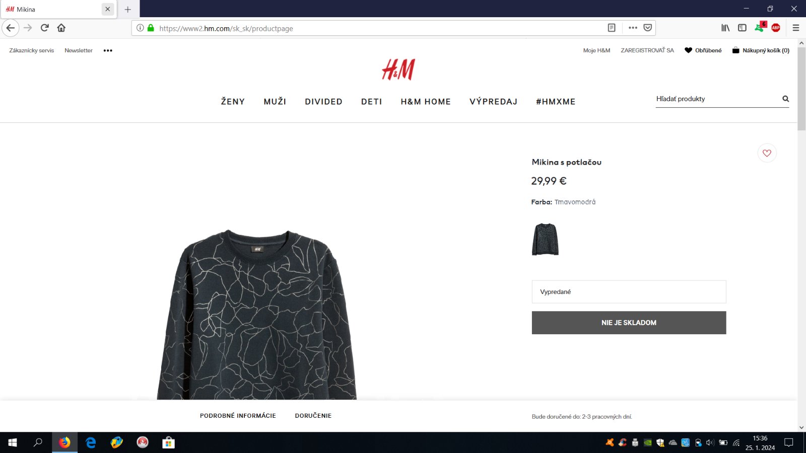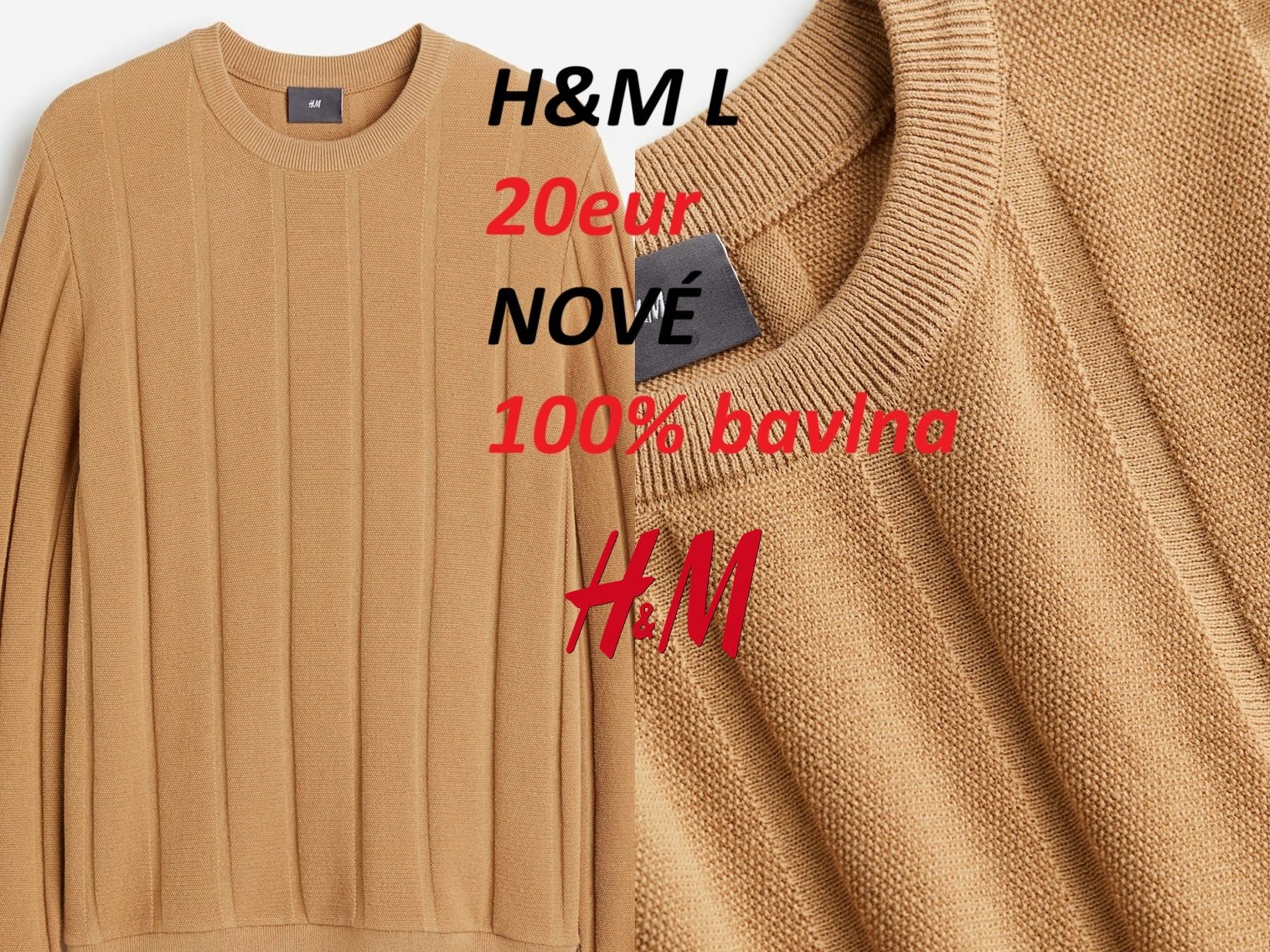 Ďalej predám pánsky pulóver H&M, veľkosť L. Pulóver je z jemného bavlneného úpletu s okrúhlym výstrihom s rebrovaným lemom, dlhými rukávmi a širokými rebrovanými manžetami aj spodným lemom. Zloženie: 100% bavlna. Pulóver je nový. Cena 20eur.