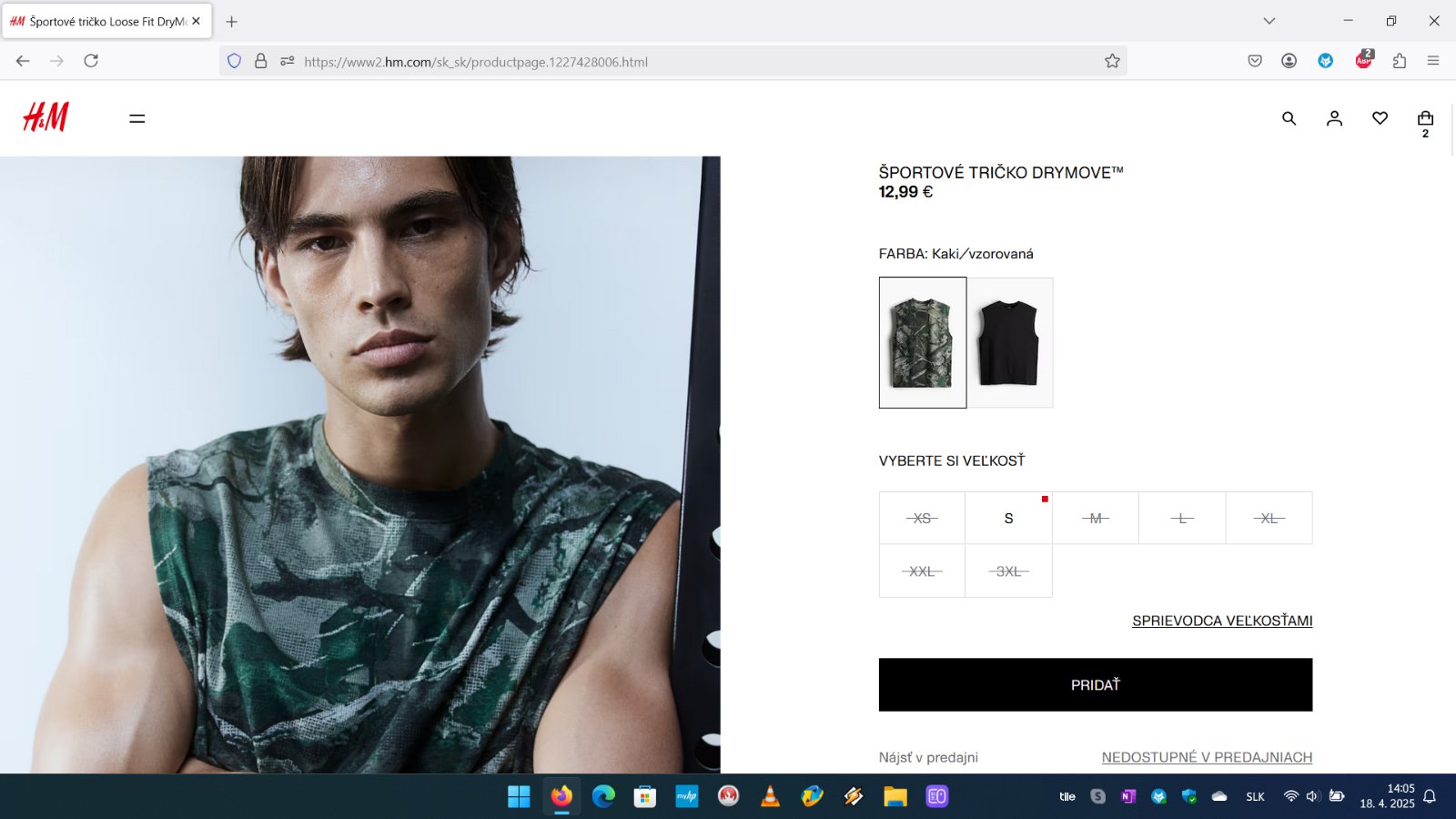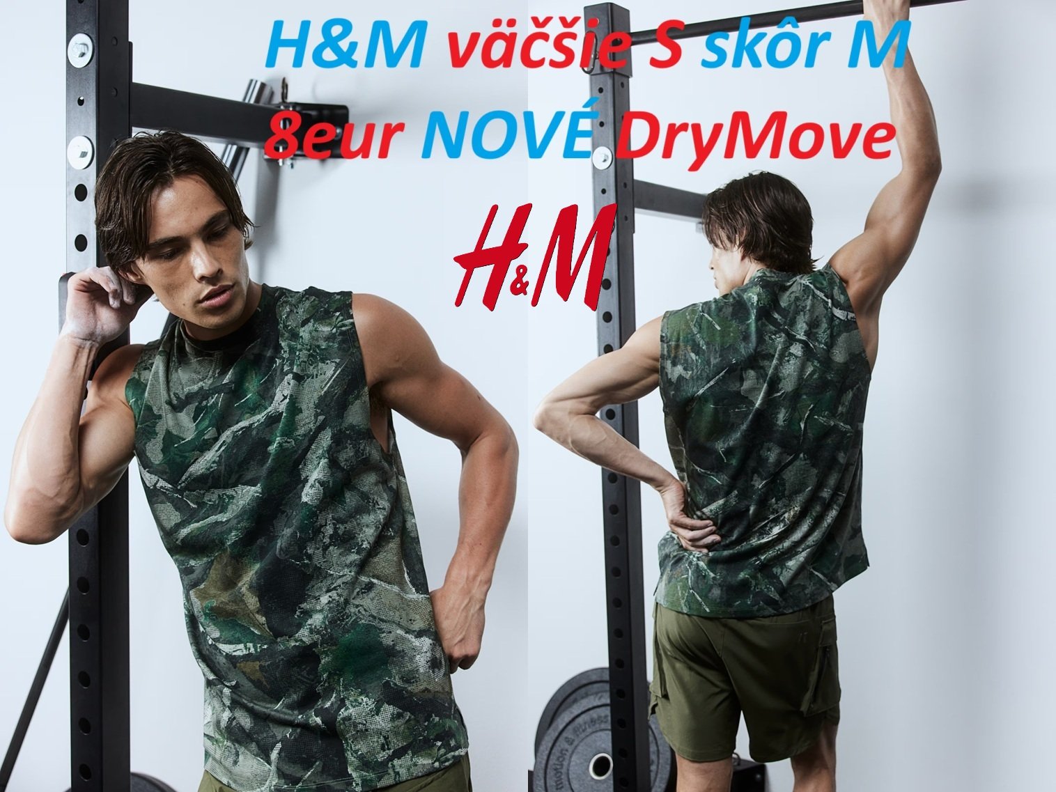 Ďalej predám pánske športové tričko H&M, veľkosť S. Väčšie S, skôr M. Tričko je z funkčnej látky vyrobenej s použitím technológie DryMove, ktorá z kože odvádza vlhkosť a pri pohybe zabezpečuje pocit pohodlia a sucha. Zloženie: 60% bavlna, 40% polyester. Tričko je bez rukávov. Tričko je nové. Cena 8eur.