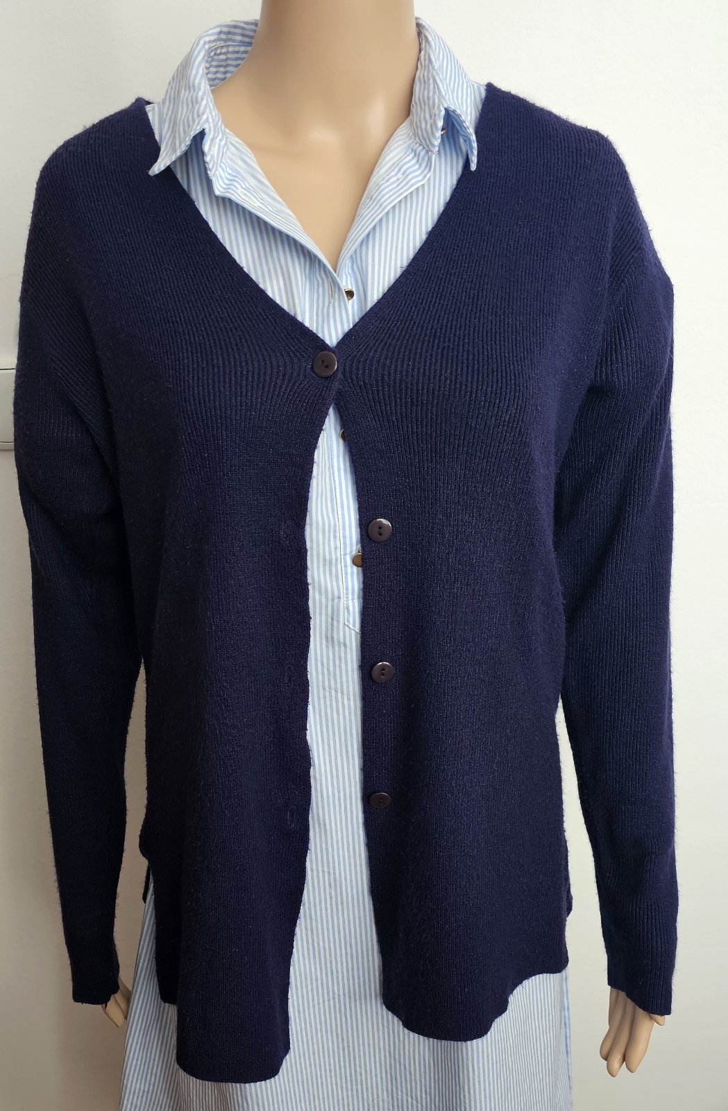 Výborný stav. Dĺžka 75 cm. Príjemný hrejivý materiál. 40% vlna, 60% chemical fiber. Na bokoch výstrih.