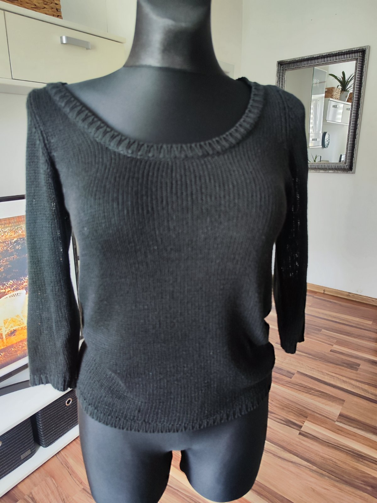 damsky cierny dlhy sveter s ozdobou, velkost je S/M, je nenoseny, bez poskodeni, cena je 9 eur + postovne