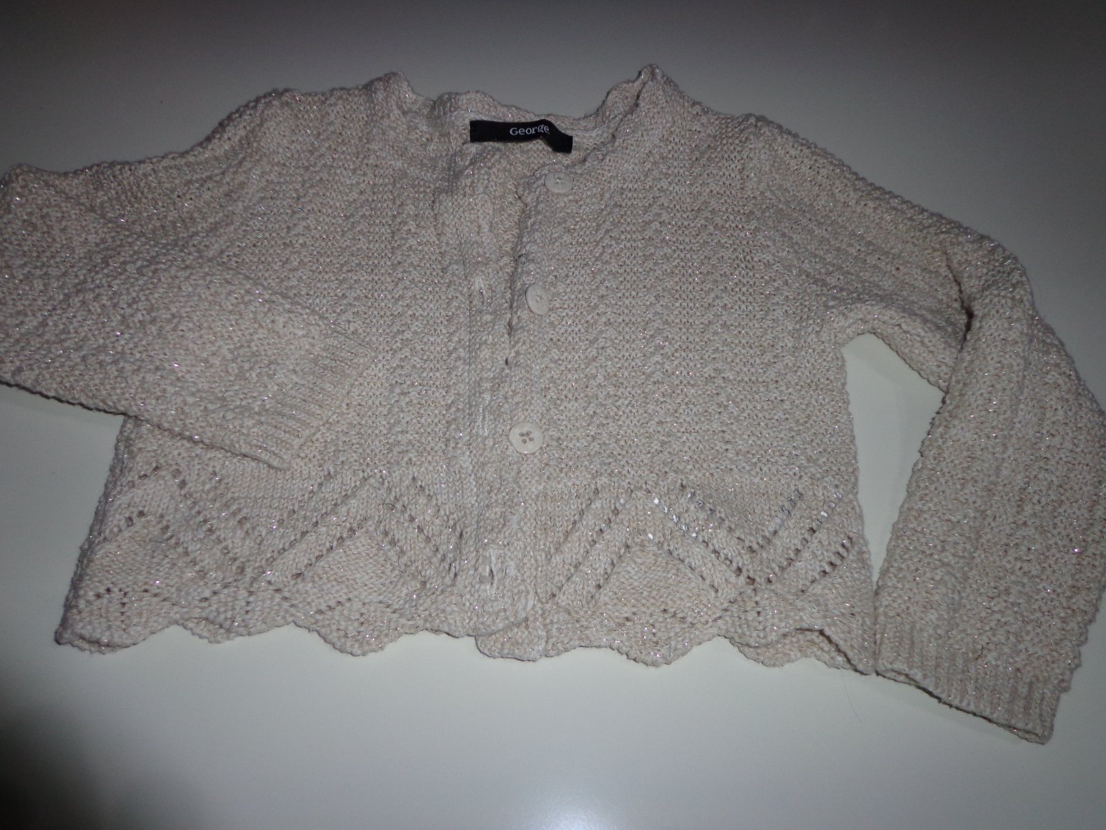 Krásny nenosený svetrík prešívaný zlatou nitkou. Dlzka 30cm.