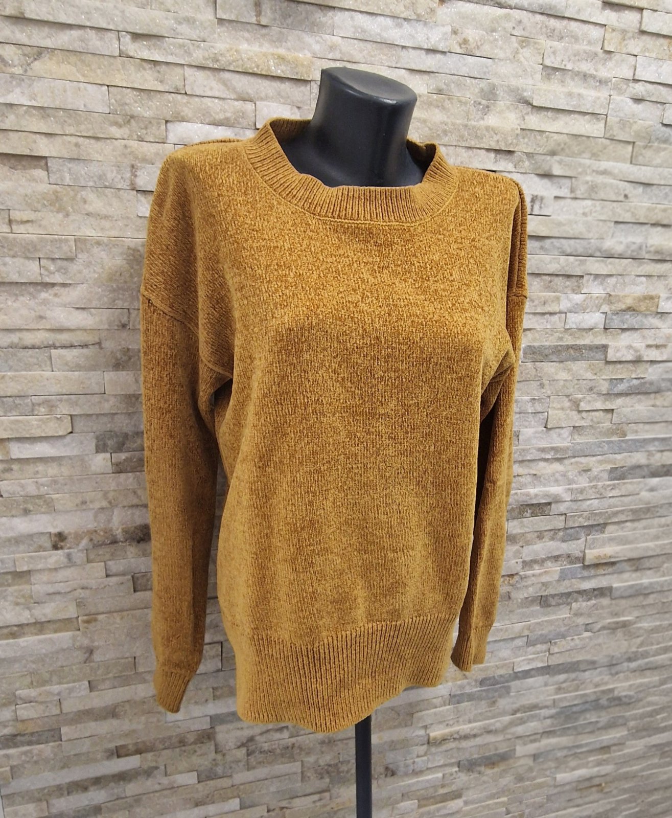 Elegantny sveter horcicocej farby s 3/4 rukavmi a okruhlym vystrihom. Bol 1x obleceny. Sirka pod pazuchami 44cm, celkova dlzka 60cm