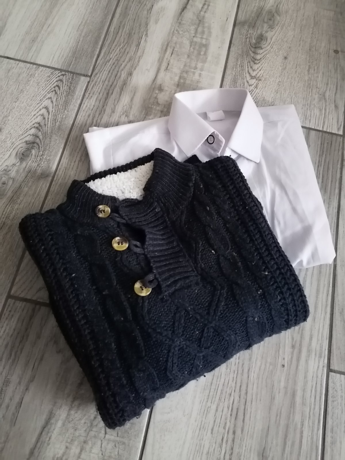 V peknom zachovalom stave, košielka grátis... Fliačik na rukáve. Nosili sme spolu pod svetrík.