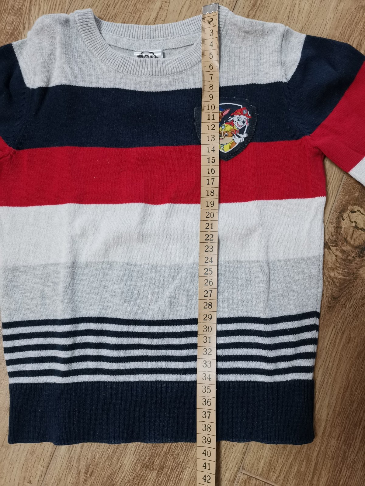 Predám krásny pulóver vo veľmi dobrom stave, bez žmolkov. Veľkosť písaná 98, ale nosili sme aj na 104.