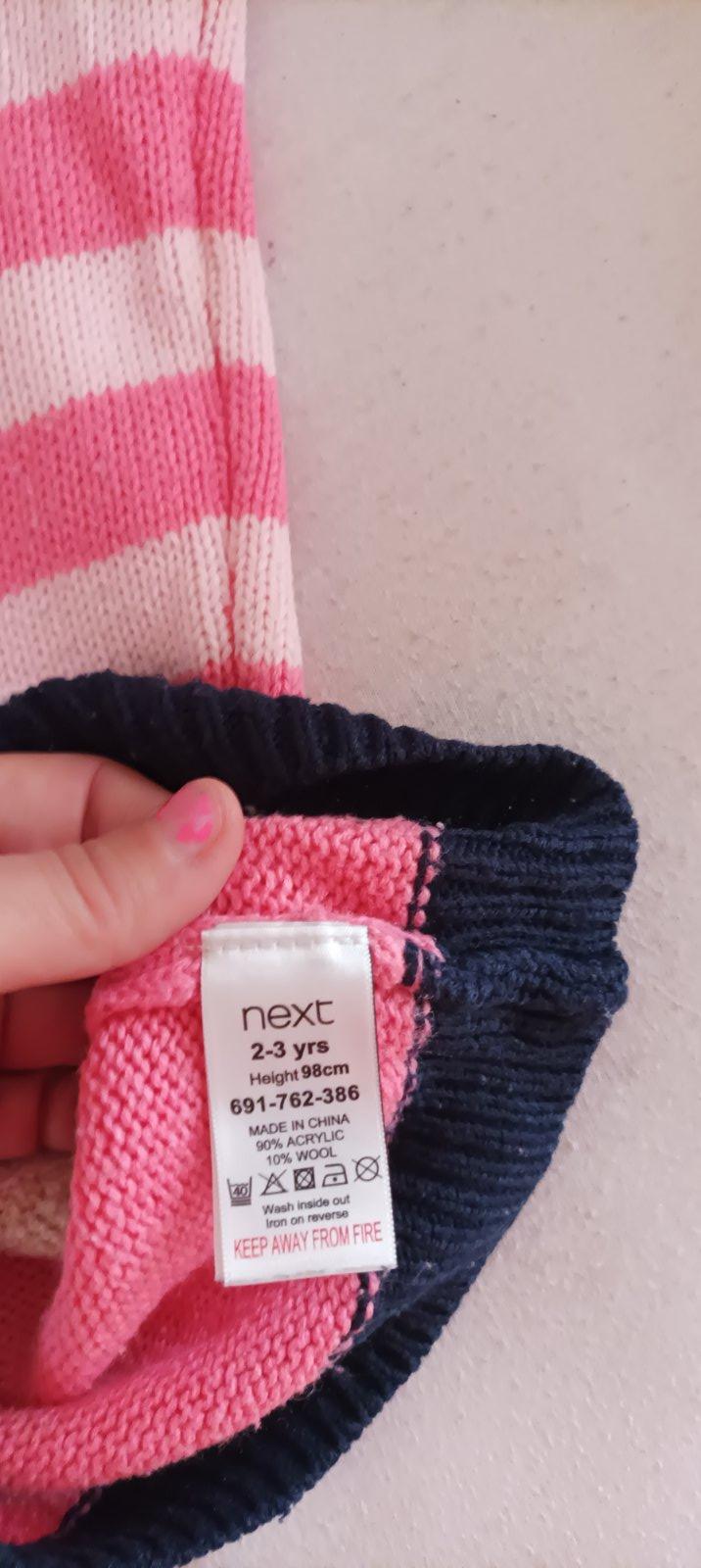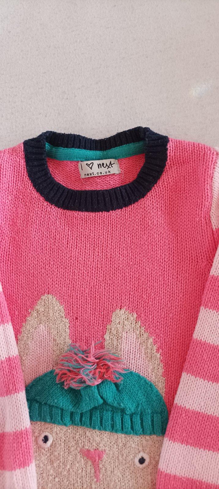 Sveter zn. Next, 100% bavlna, veľkosť 98cm, rozmery: rameno-rameno: 30cm, rameno-rukáv: 33 cm, zhora-dole: 35cm. Veselý, s detským vzorom. Elegantný, vhodný napr. k rifliam miesto mikiny.