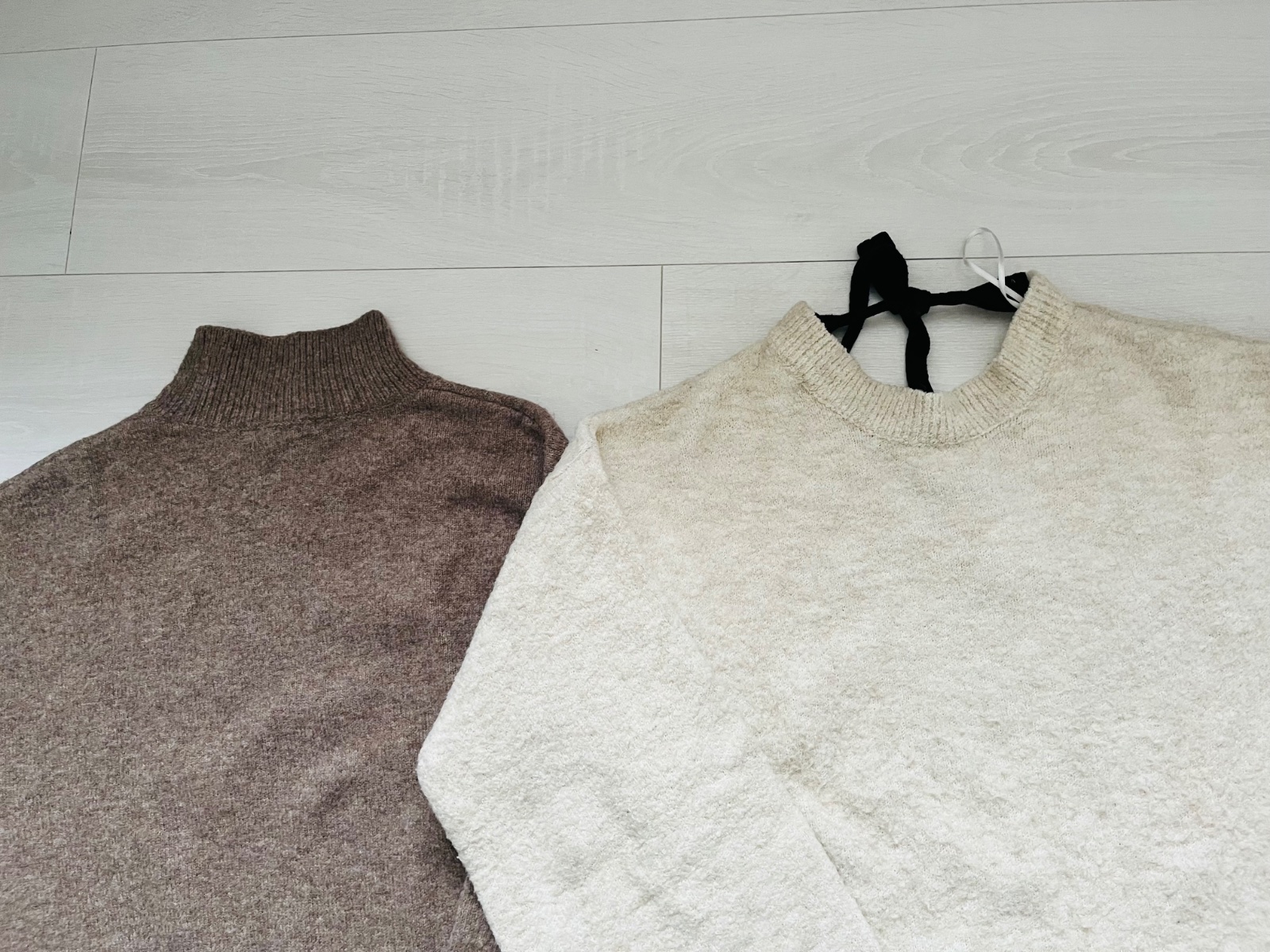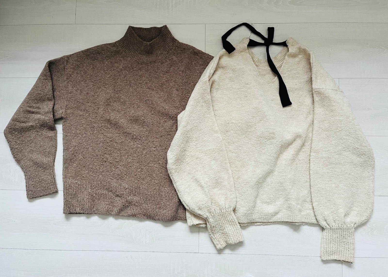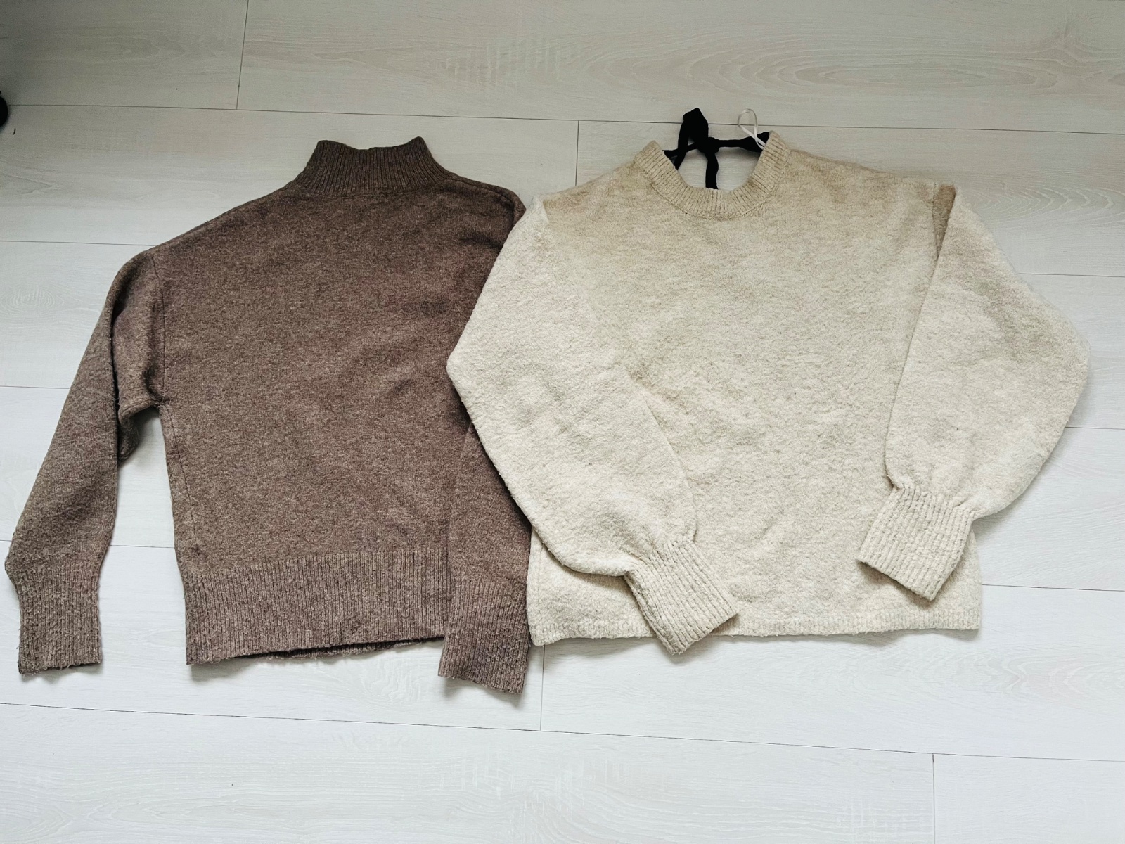 Kremovy pulover je znacky Stradivarius, hnedy je znacky H@M. Nosene, cena spolu 9,50 Eur a 4,50Eur postovne