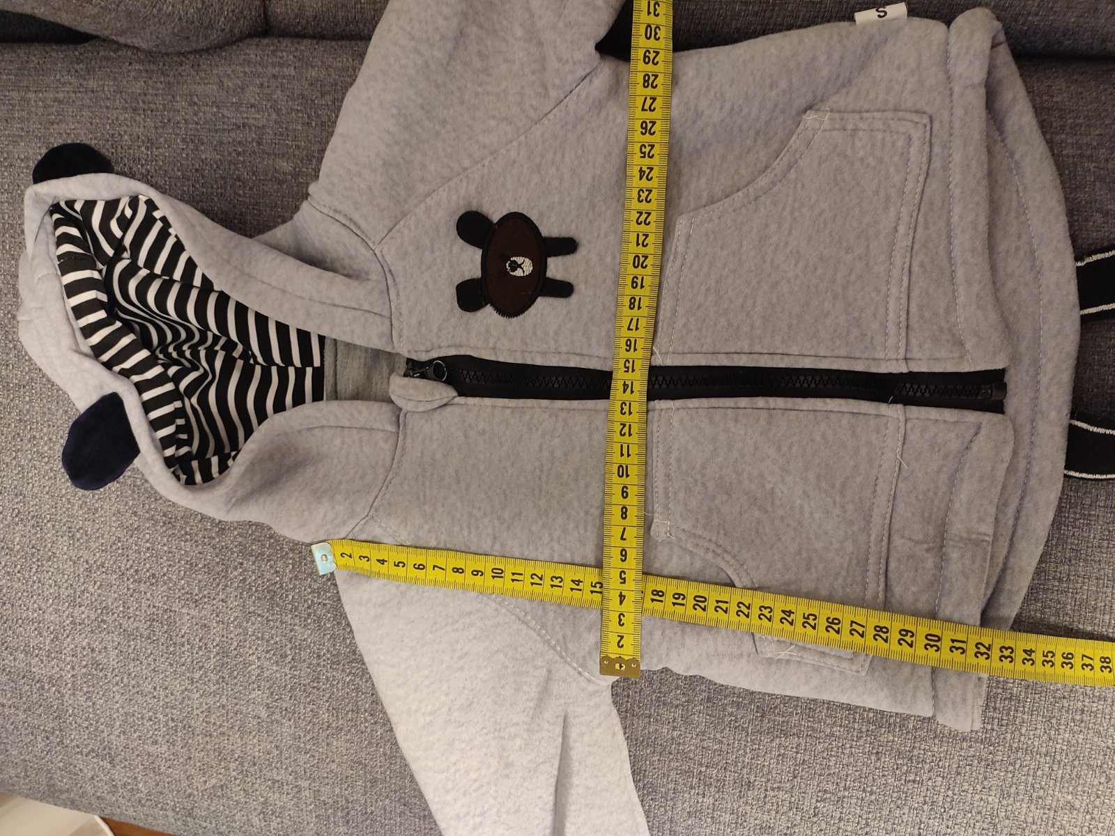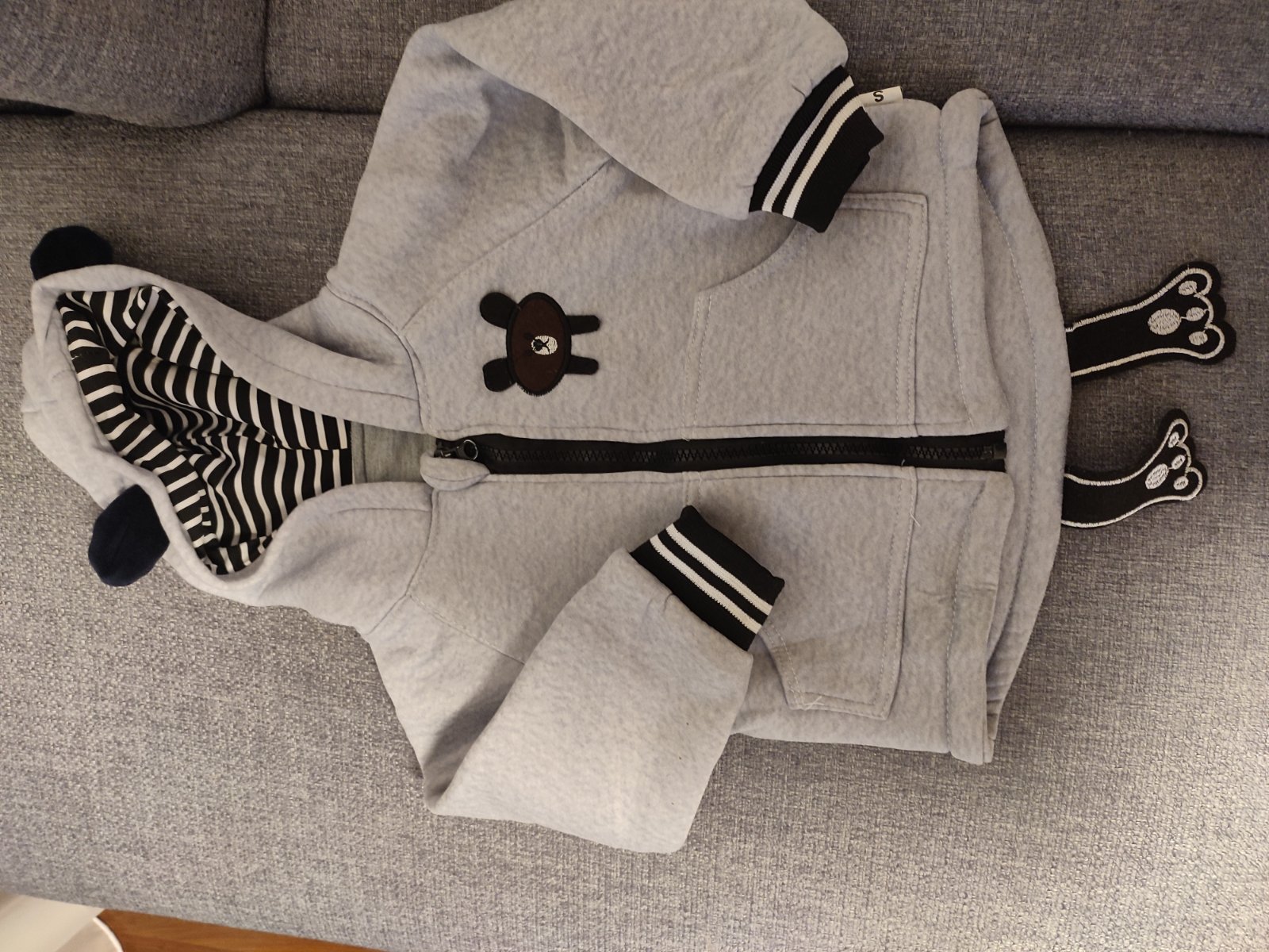 Predám veľmi milenú zateplenú bundičku 12-18mes. Bundička je s kapucou s uškami, na chrbátiku veľmi milenáaplikácia. bunda bundička na jeseň chladnejšie počasie prechodová bunda mikinka