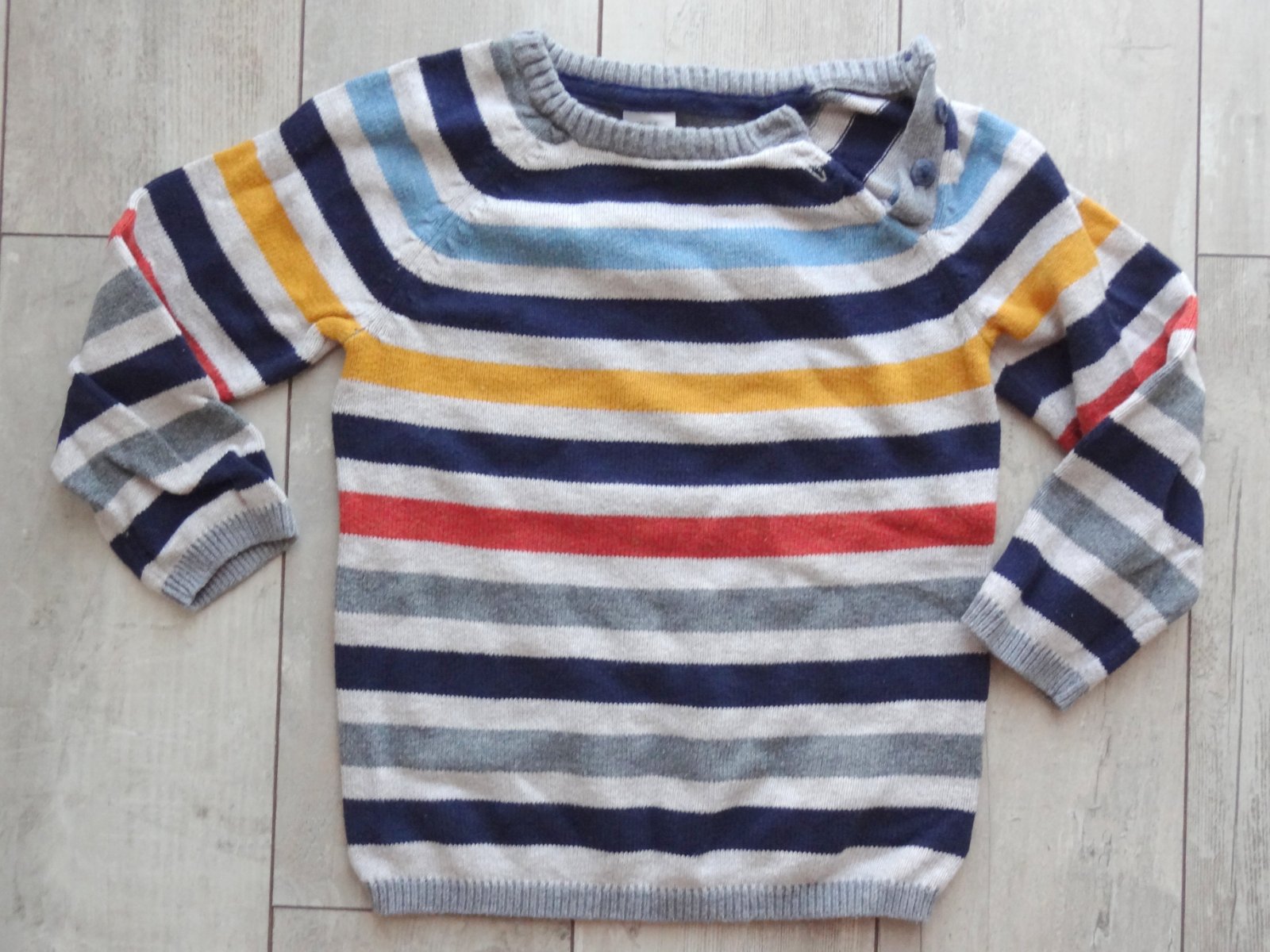 Pruhovaný sveter/pulover H&M, vo veľmi dobrom stave, veľ. 92 (1 ½ - 2 roky), dĺžka 38 cm, šírka pod pazuchami 29 cm
