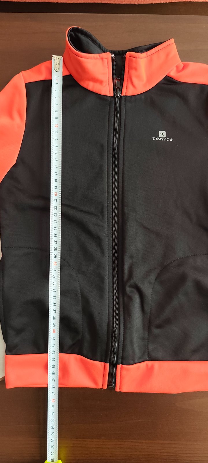 Zadná strana je celá červená. Pre chudého chlapca. Podľa mňa aj 122/128. Kúpená v Decathlon.