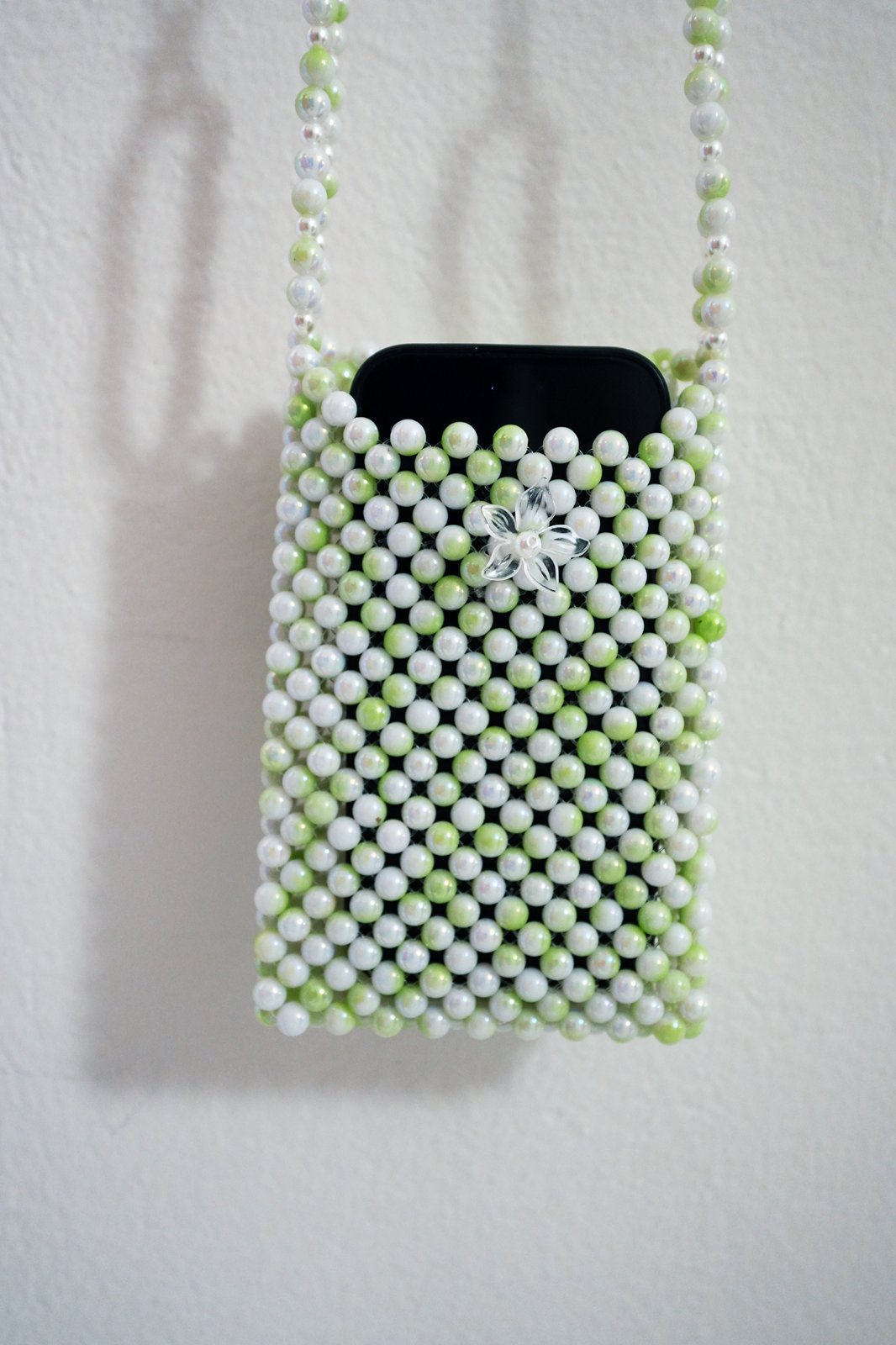 Púzdro na telefón z korálok, plne funkčné, originálne. Rozmery: 16,5x10,5x1,5 cm. Celková dĺžka: 85 cm