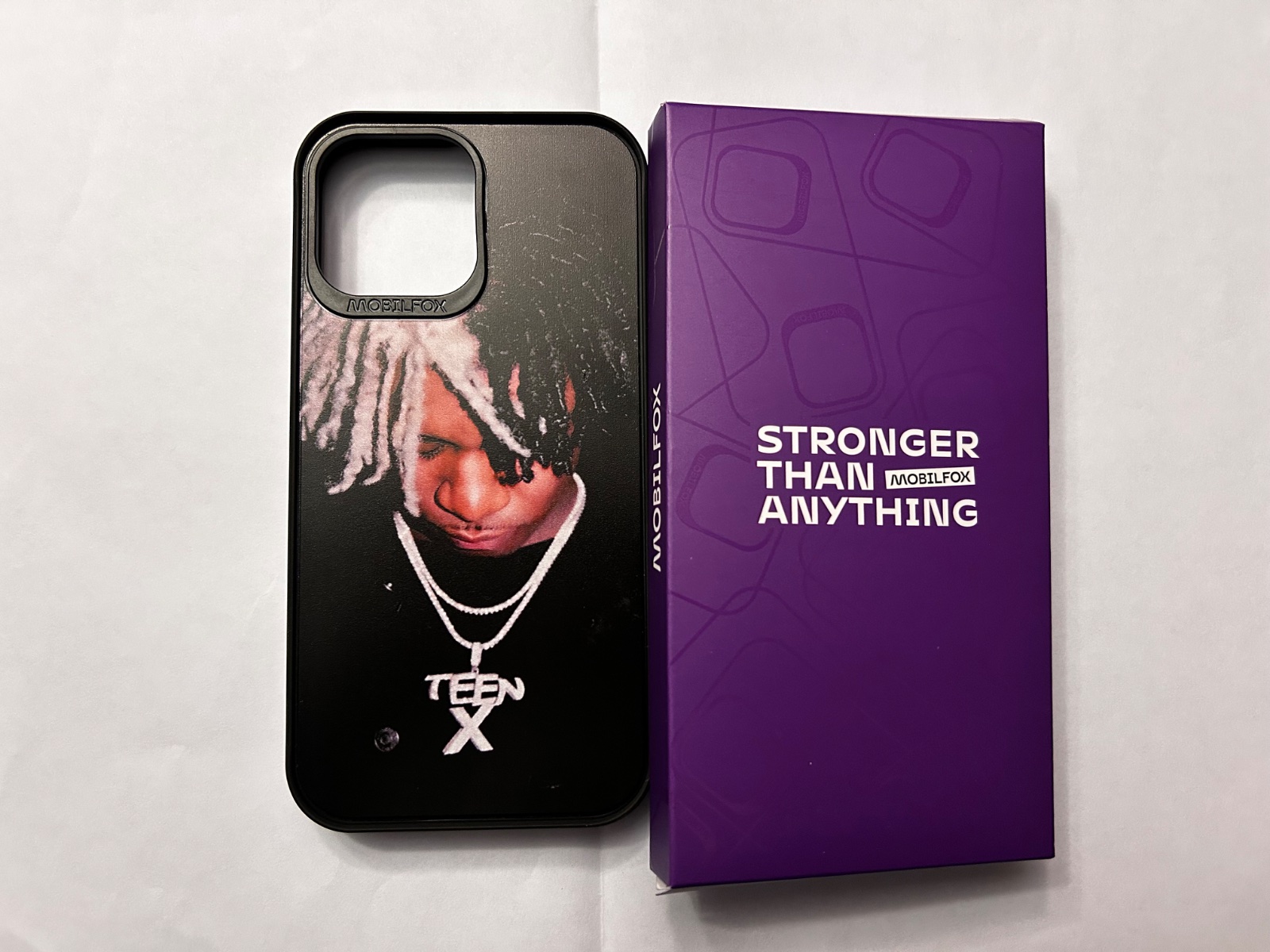 Nový obal na mobil iPhone 13 Pro Max s fotkou rappera Kena Carsona a tvrdené ochranné sklo.