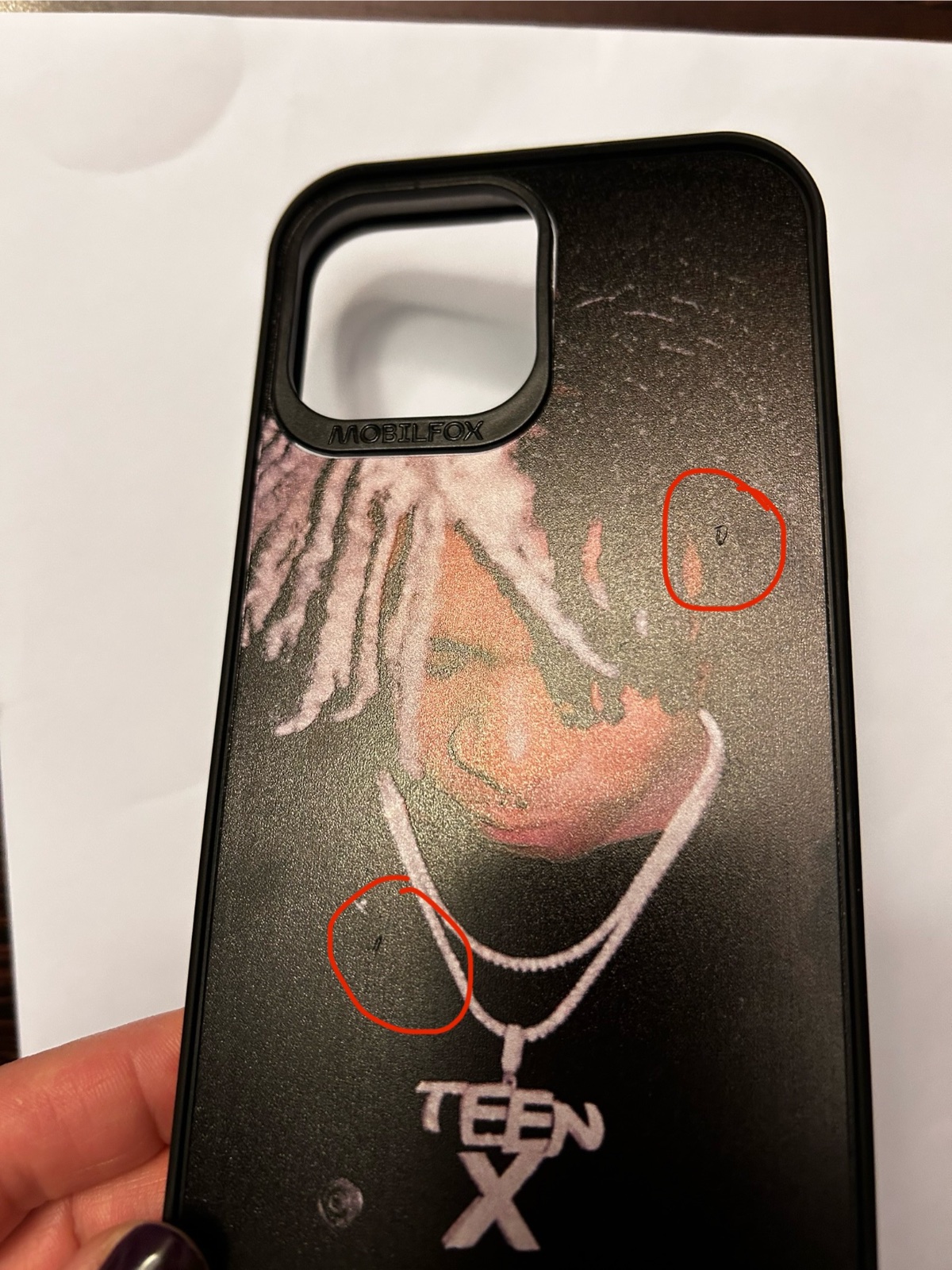 Na obale sú dve miniatúrne poškodenia, ktoré nie sú vidieť, pokiaľ sa človek na ne nezameria. Prišlo to tak od dodávateľa.