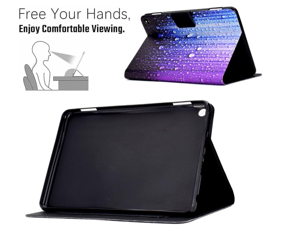 Ochranné puzdro typu folio s dizajnom vodných kvapiek a funkciou stojana pre rôzne modely tabletov vrátane zariadení Lenovo Tab M10.