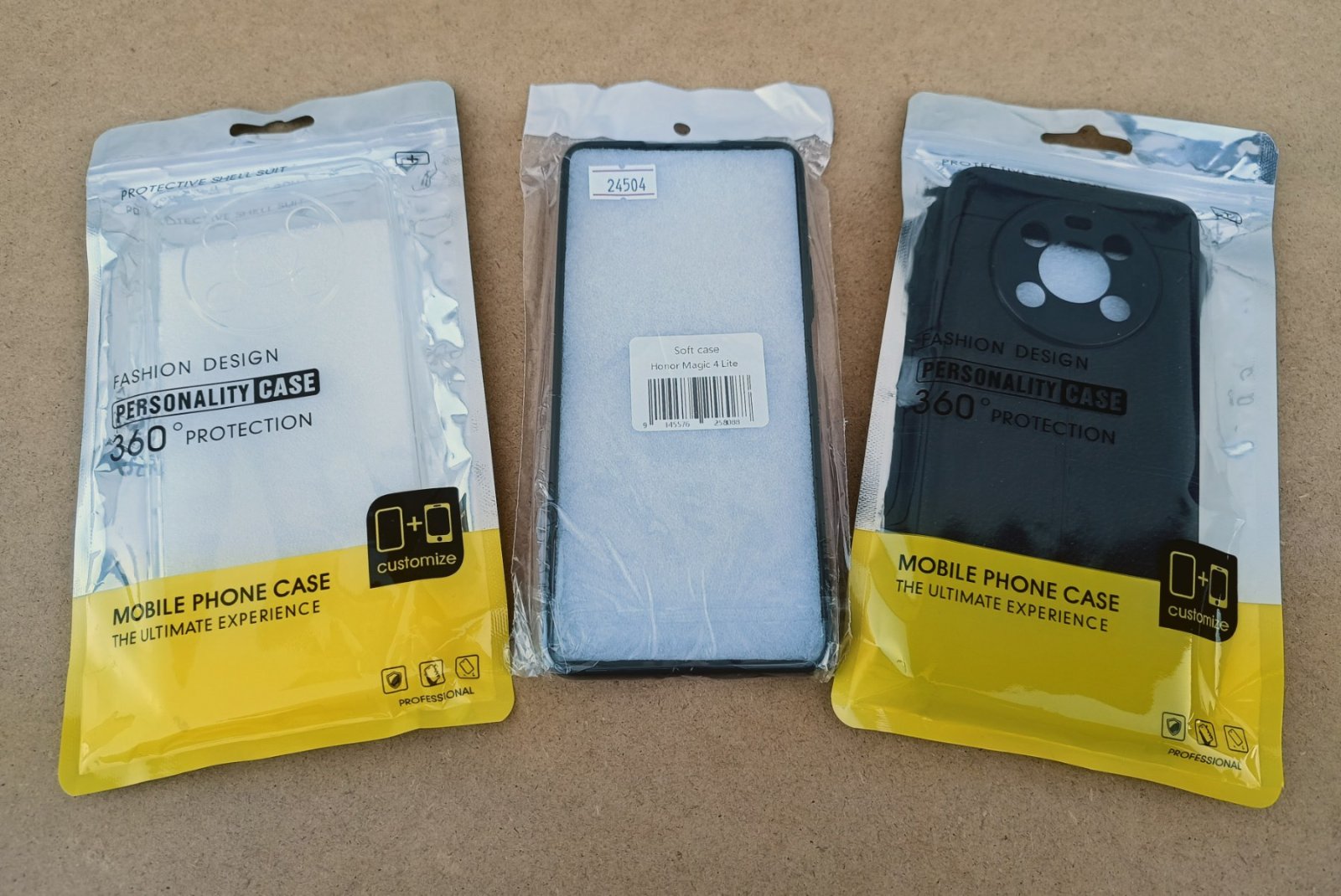 Predám 3 úplne nové kryty na mobil Honor Magic 4 Lite – 1x priesvitný a 2x čierny obal s 360° ochranou.