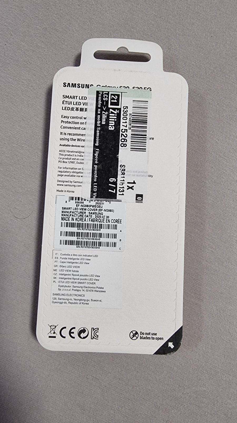 Predám originál Led obal na telefón Samsung Galaxy S20. Oba ešte v pôvodnom obale nové. Biely je knižkový a tmavosivý je zadný kryt. Cena 5€ kus.