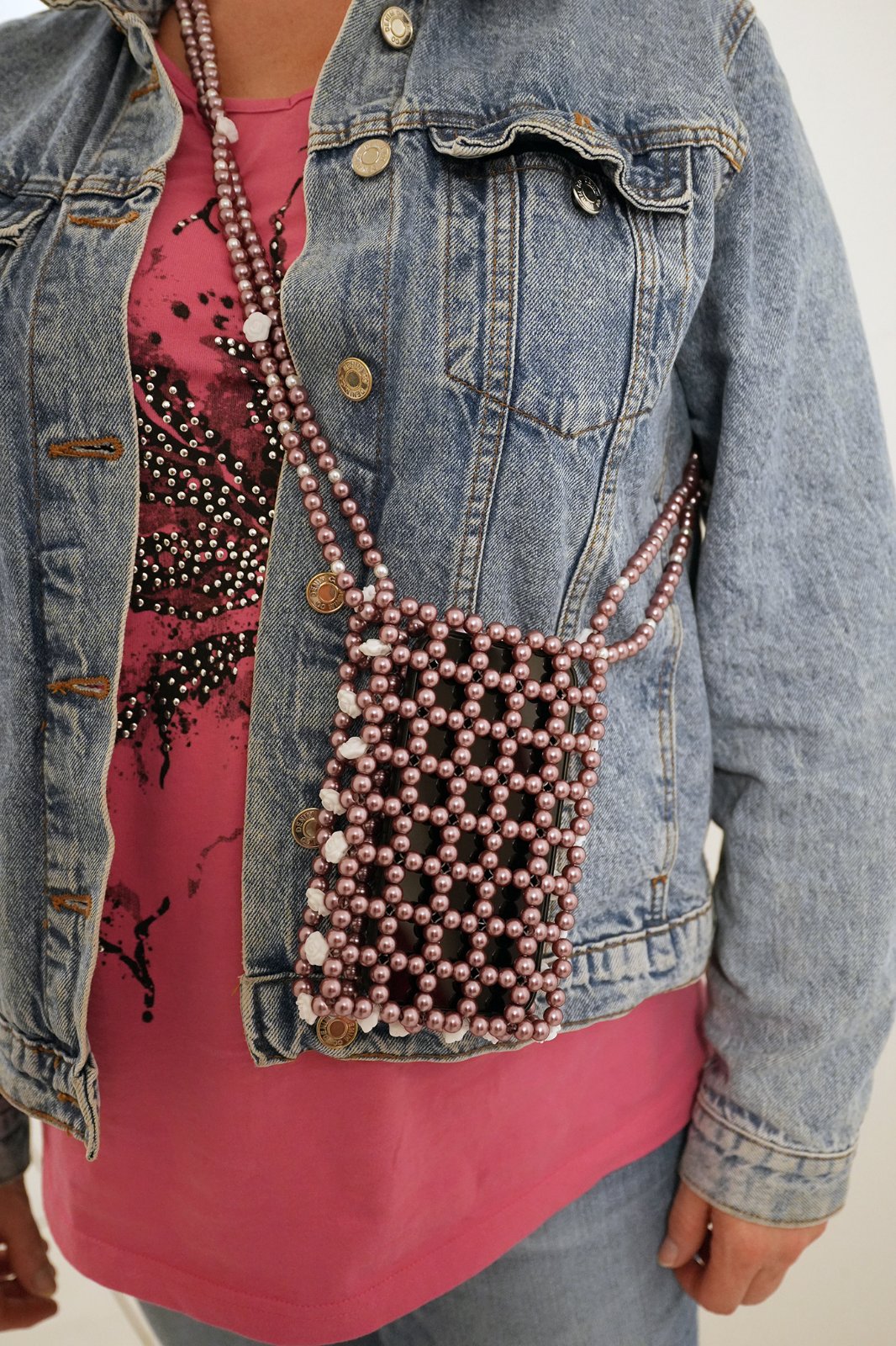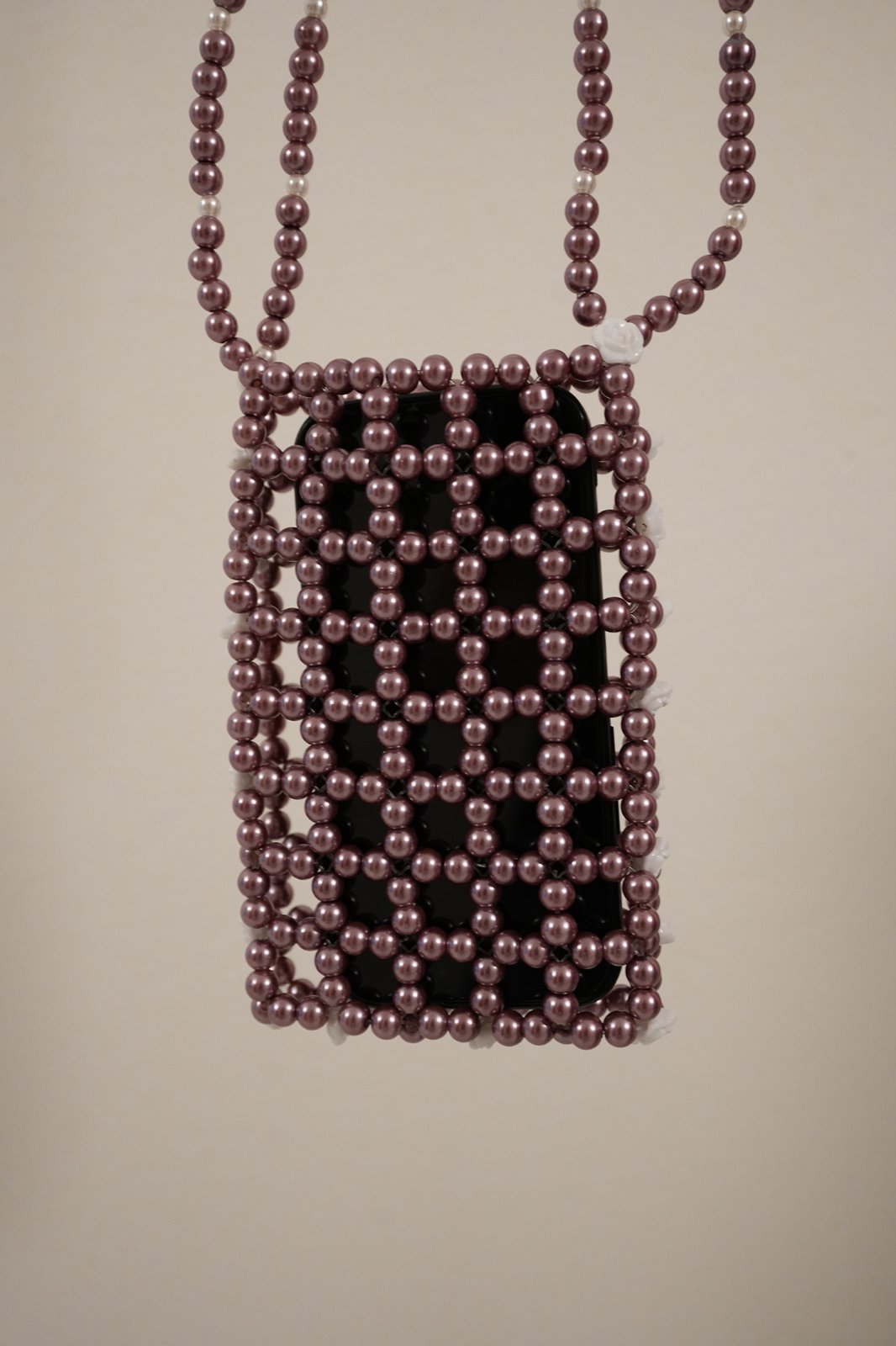 Púzdro na telefón z korálok, plne funkčné, originálne. Rozmery: 16x10x2 cm. Celková dĺžka: 70 cm