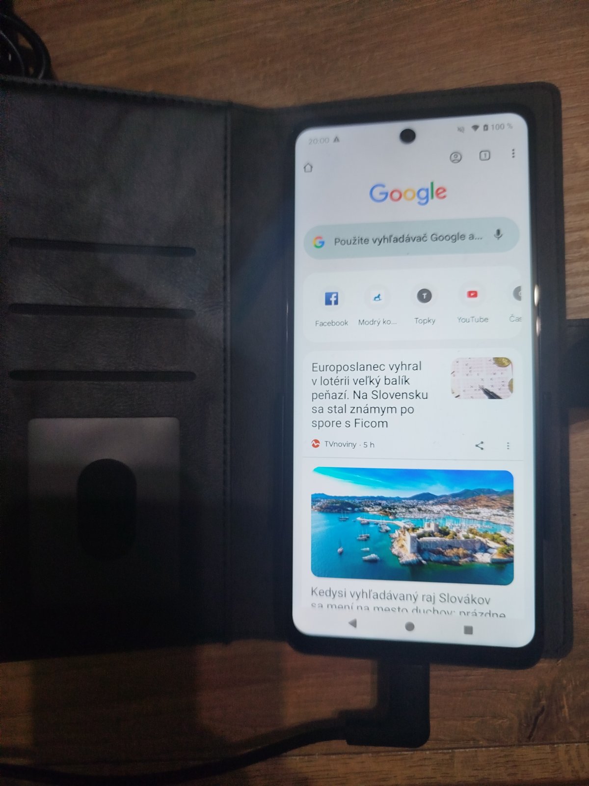 Nemá ochranné sklo ale má knizkovy kožený obal ako nový.
