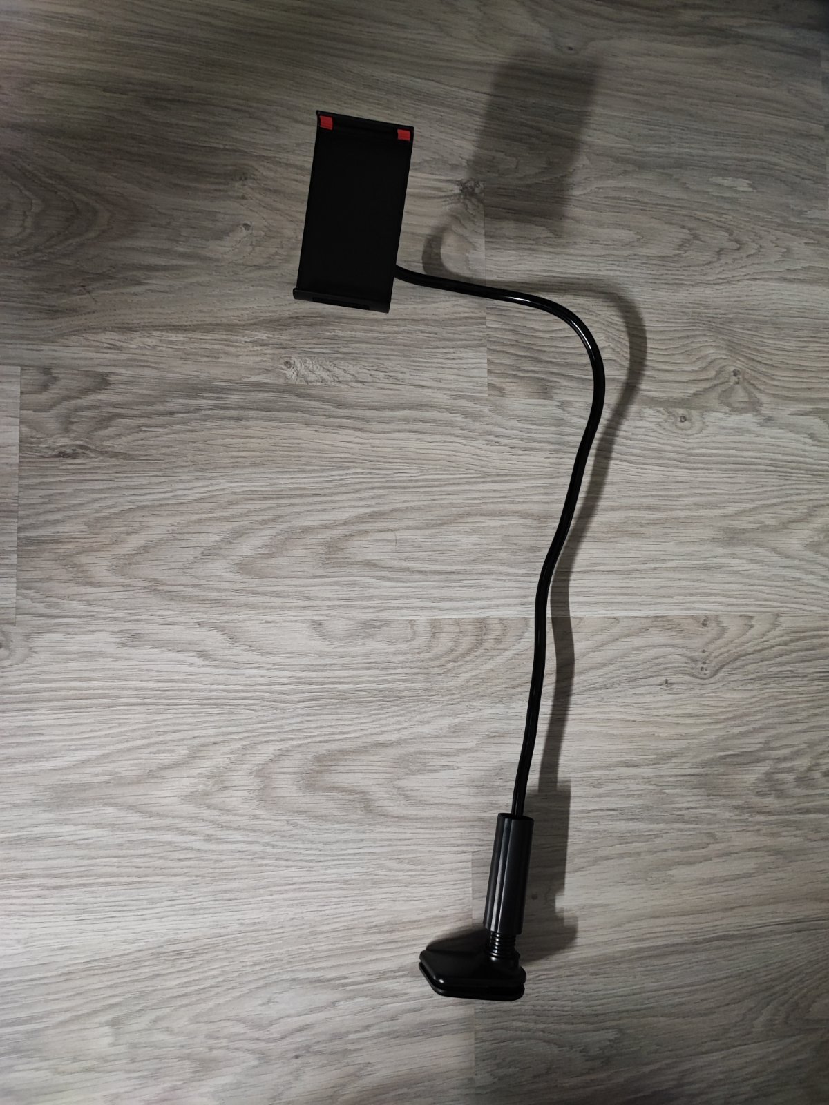 Predám držiak na mobil ale i tablet. Vie sa prispôsobiť. Má ohybný ale pevnú konštrukciu a na konci upevnenie o nabytok