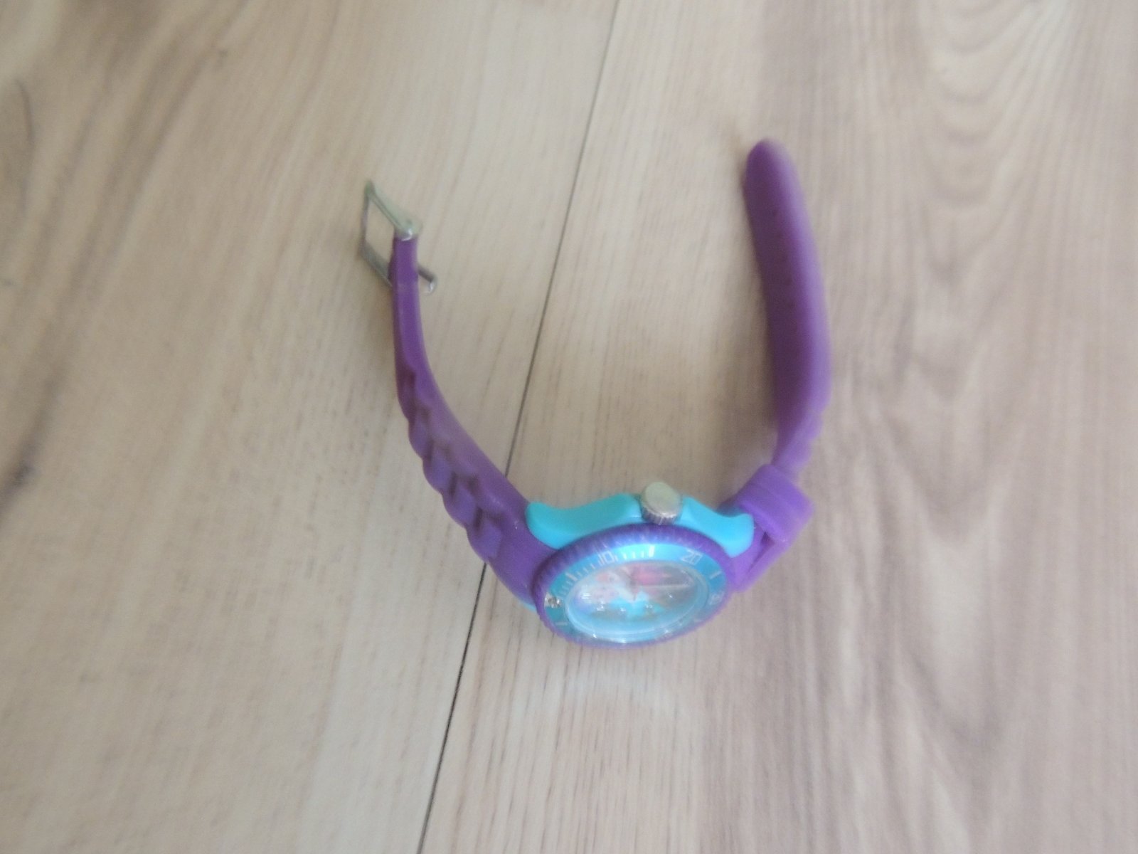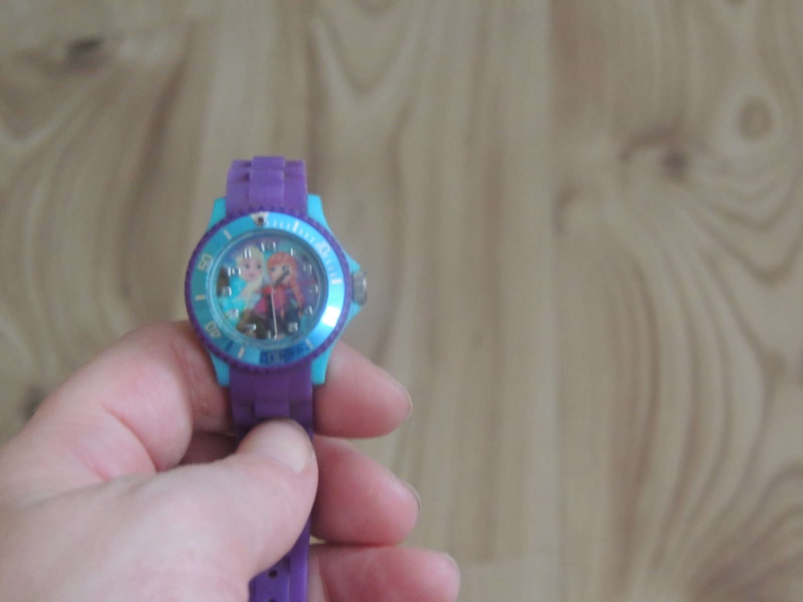 Dievčenské Disney hodinky Ľadové kráľovstvo so zobrazením Anny a Elzy. Gumený remienok, majú ciferník aj sekundovú ručičku. 100 % stav.