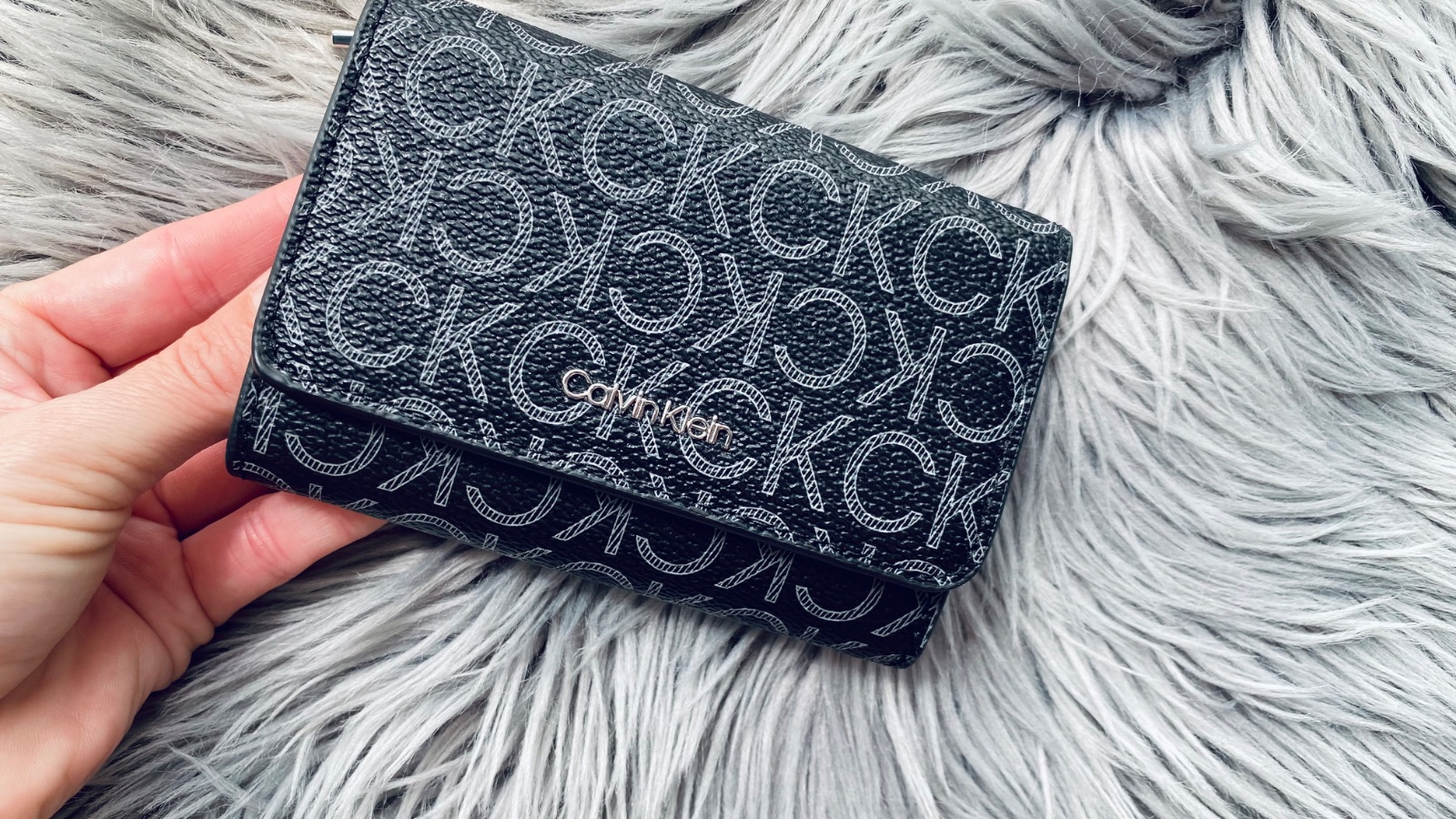 Dámska peňaženka Calvin Klein v čiernej farbe s monogramom značky, vzatá 1 krát, 100% stav, ako nová. Peňaženka má priehradky na karty, bankovky aj na mince. Zdobí ju strieborný detail, ako je logo značky na prednej časti. Materiál : eko koža. Rozmer:12 x 8,5 cm.