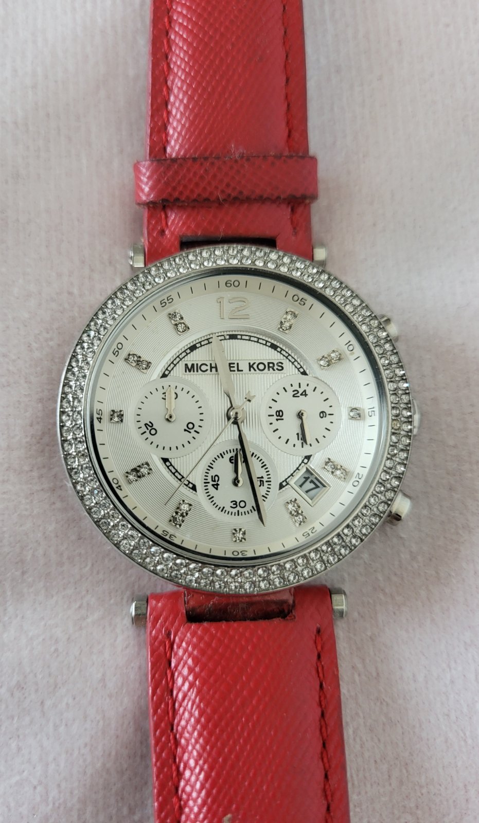 veľmi dobrý stav, remienok zvnútra mierne popraskaný, detaily nafotené, plne nositeľné, treba si kúpiť baterku, remienok 100%koža+kov chirurgická oceľ, s kamienkami, 10 ATM, pošlem buď poštou alebo packetou