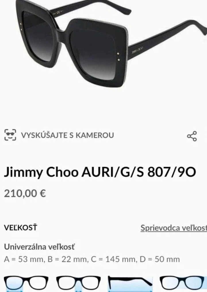 Slečne okuliare zn Jimmy Choo, kupované minulý rok, originálny kúsok, mala som ich na sebe asi 2x mne nesadol tvar, stav 10/10, pri rychlom jednaní dohoda možná