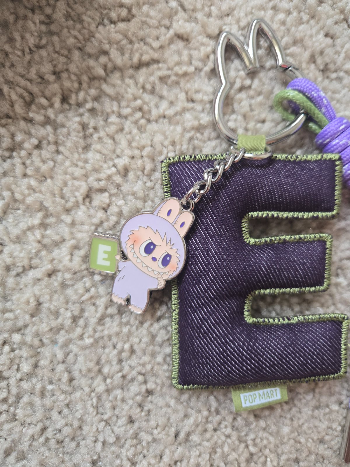 Prívesok z kolekcie Labubu Pin for Love - písmeno E.
